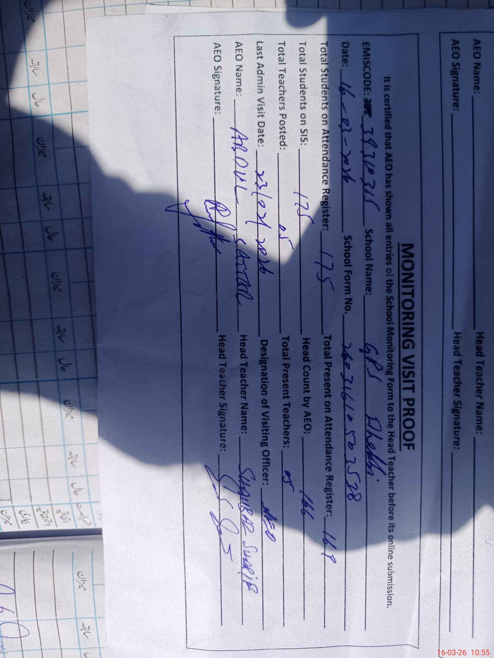 | EMIS Code: 39310315 | Name of School: GPS DHABBI | |||