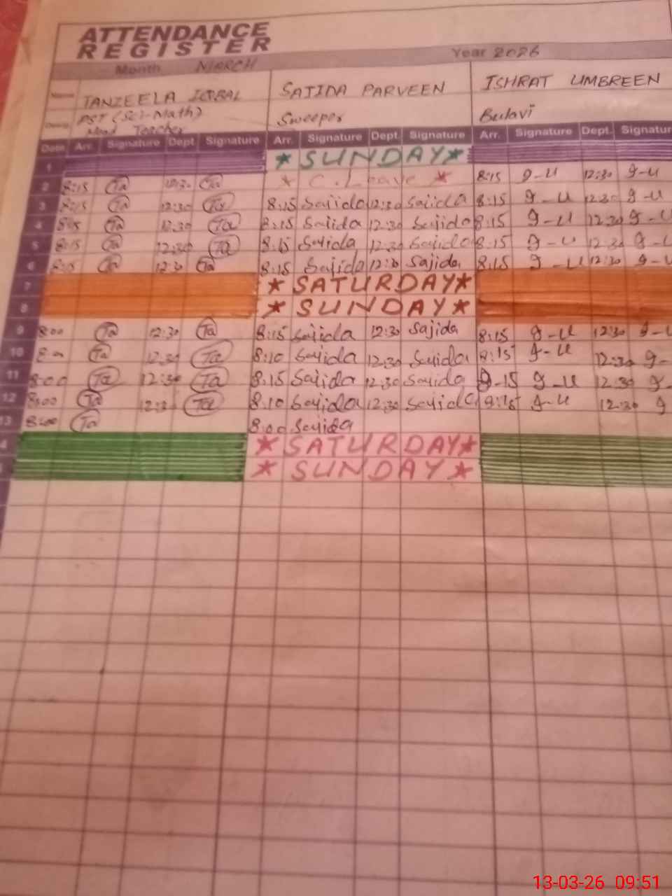 | No. of Students Present - Female | 0 | 0 | 0 | 0 | 0 | 0 | 0 | 0 | 0 | 0 | 0 | 0 | 0 | |||
