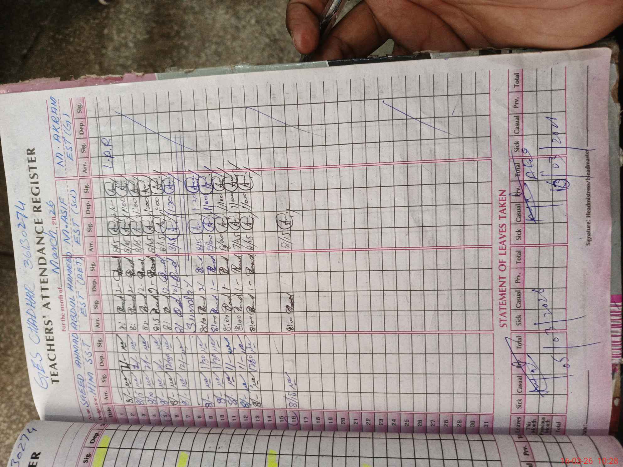 | No. of Students Present - Male | 0 | 20 | 30 | 30 | 32 | 26 | 12 | 22 | 18 | 19 | 239 | |||||