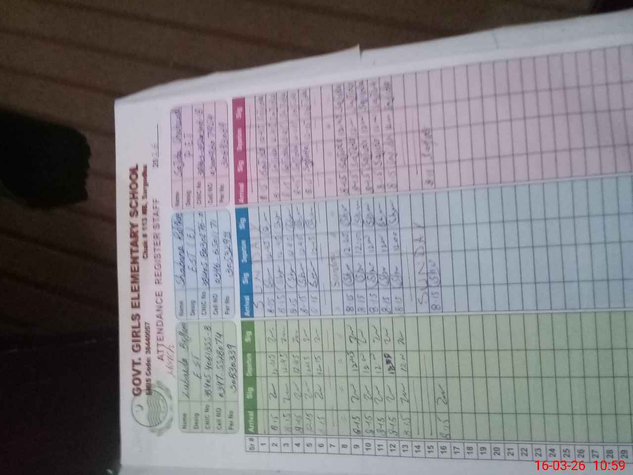 | Name: Zu**** Be**** Designation: (School Headmaster's/Headmistress's) EST ARTS Phone/Cell Number: 03**** |