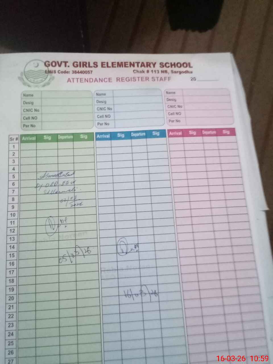 | CNIC | Full Name | Designation | R/C | Absence During Last Calender Month |