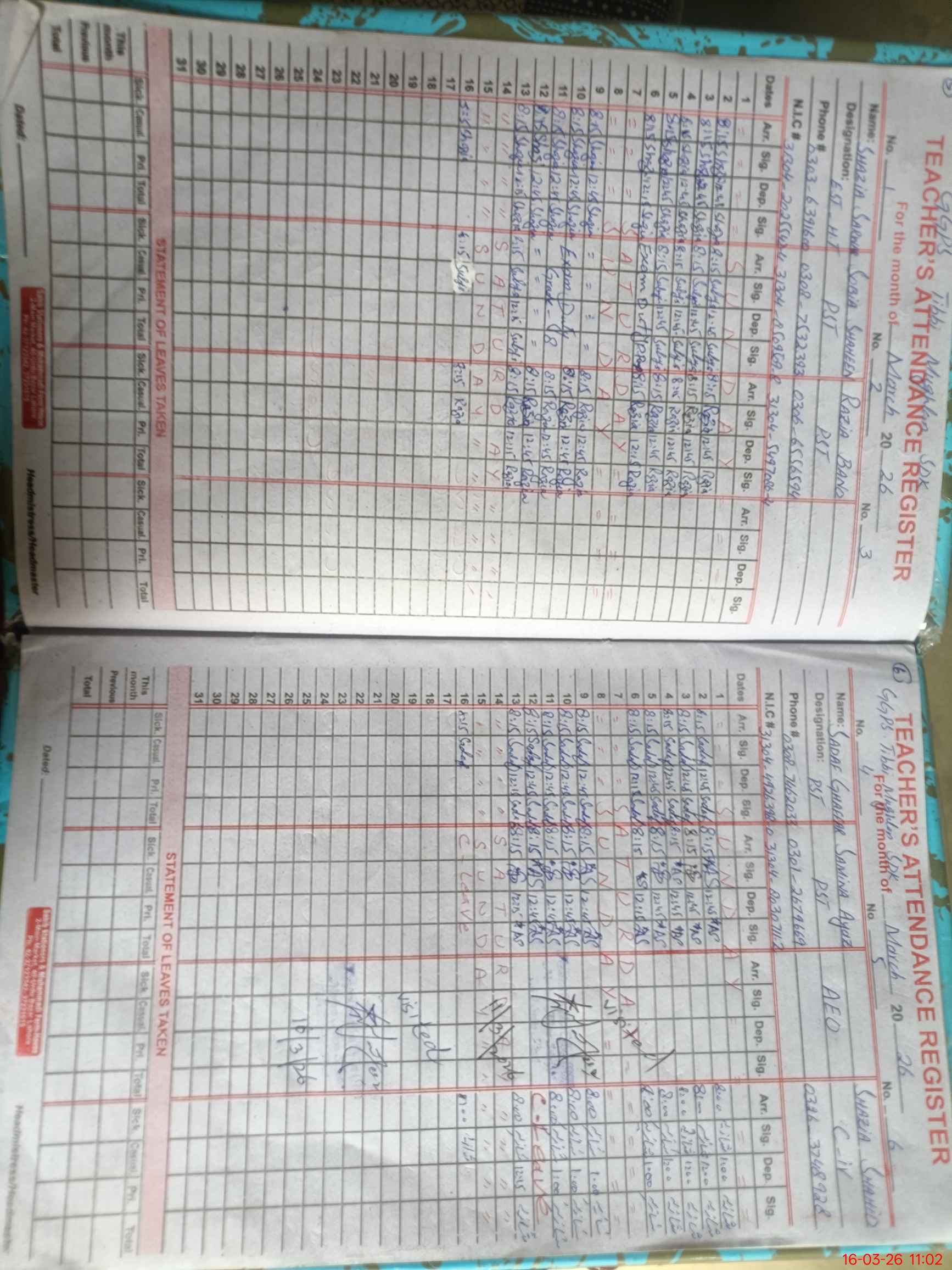| CNIC | Full Name | Designation | R/C | Absence During Last Calender Month |