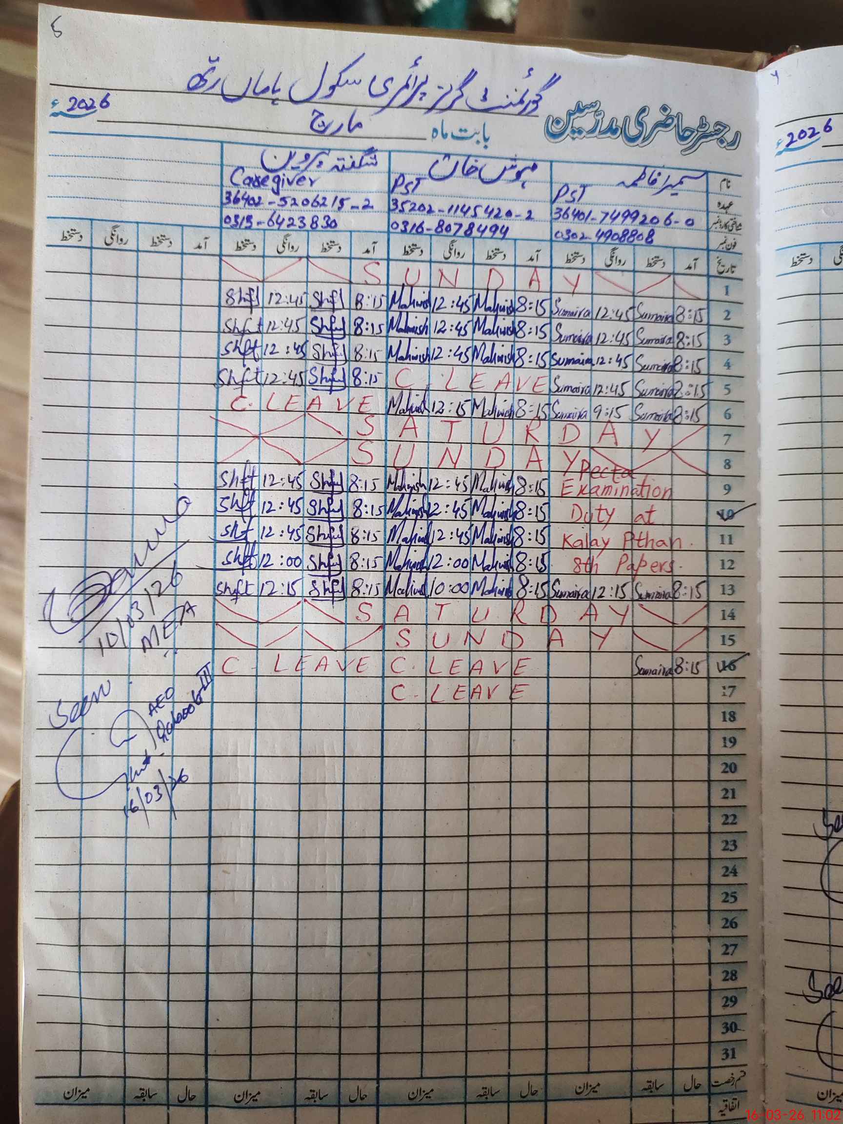 | Name: SU**** FA**** Designation: (School Headmaster's/Headmistress's) PST Phone/Cell Number: 03**** |