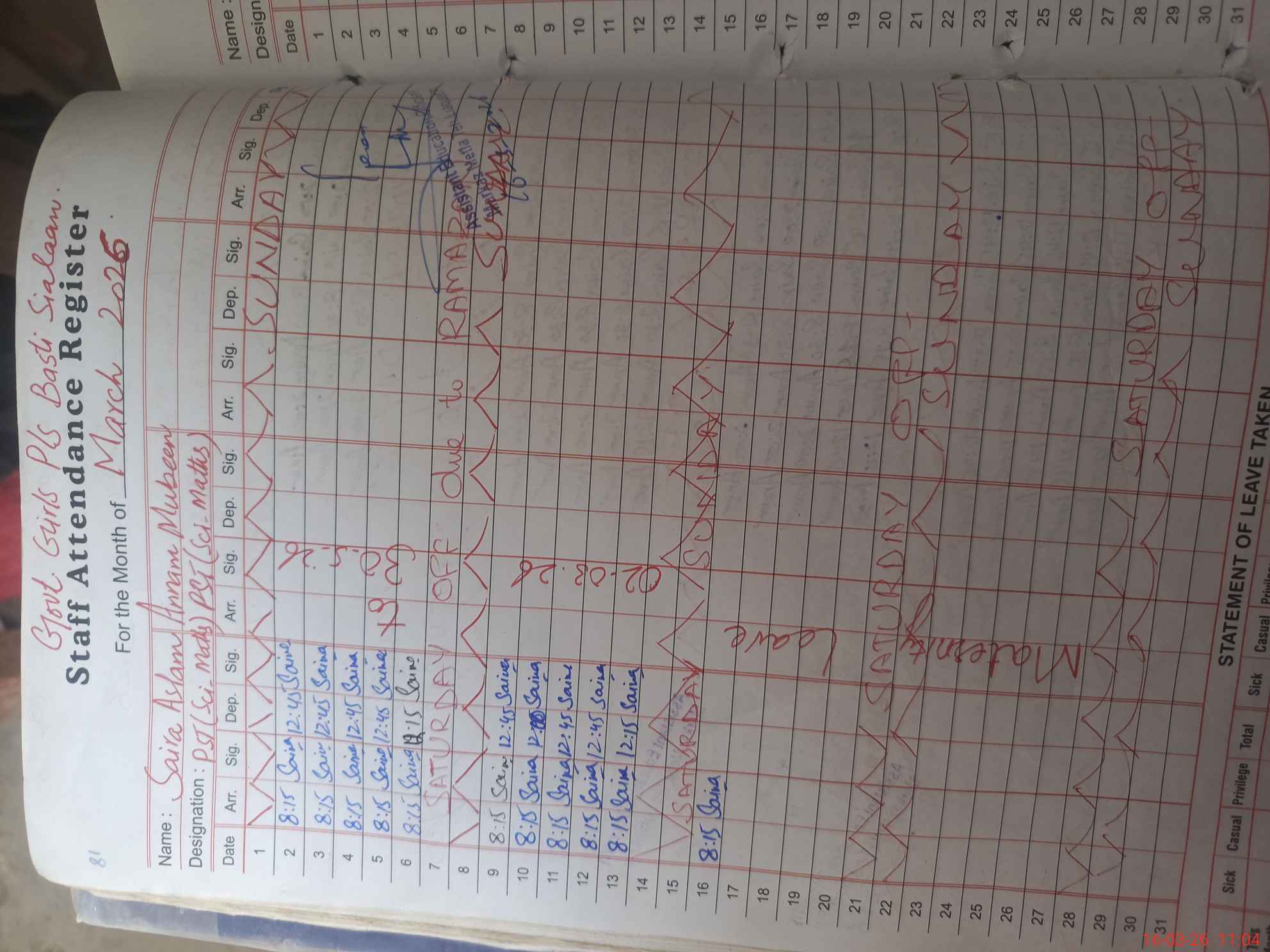 | Leave | Duty | Absent | Maternity | Medical | Ex- Pak |