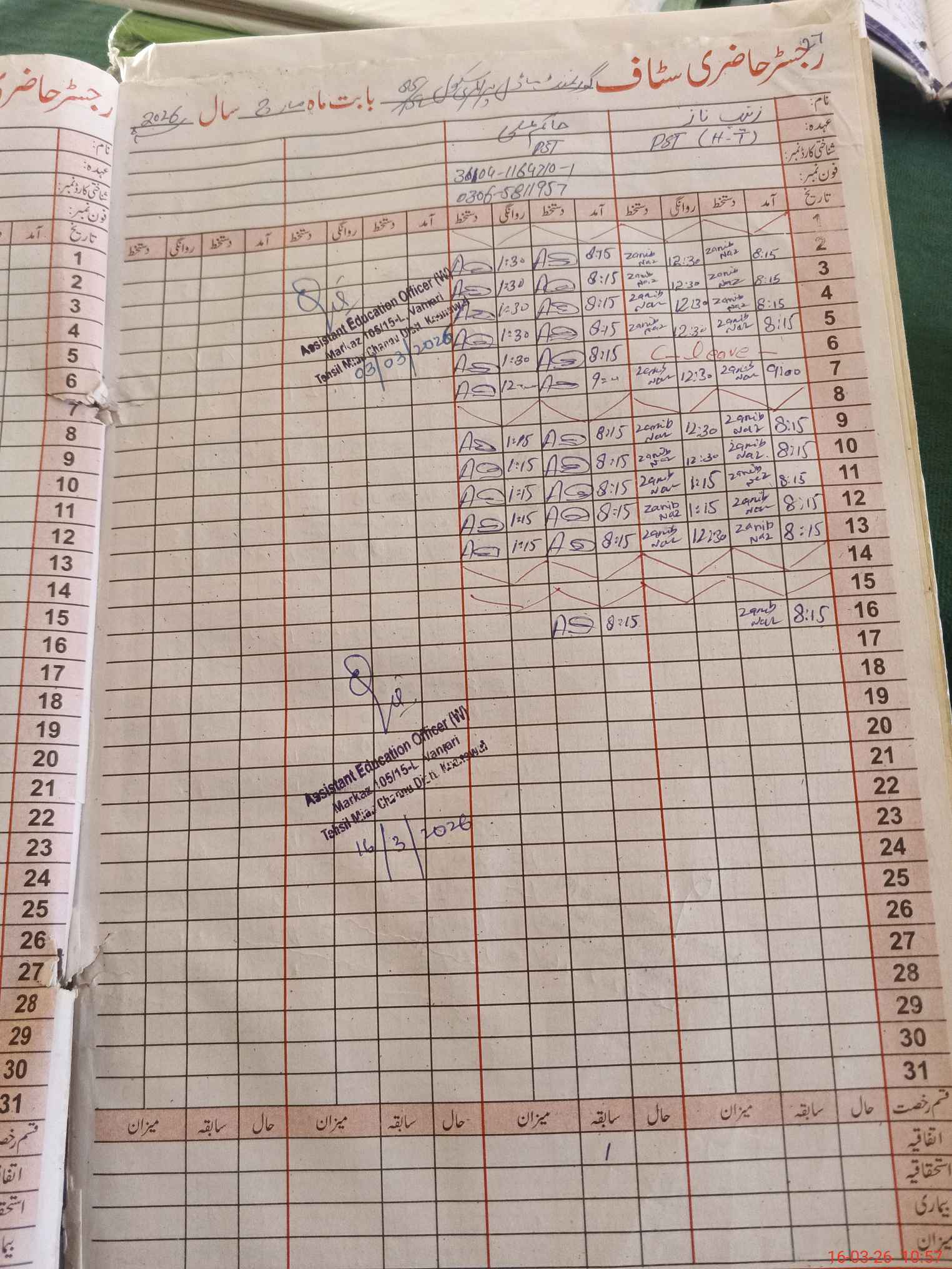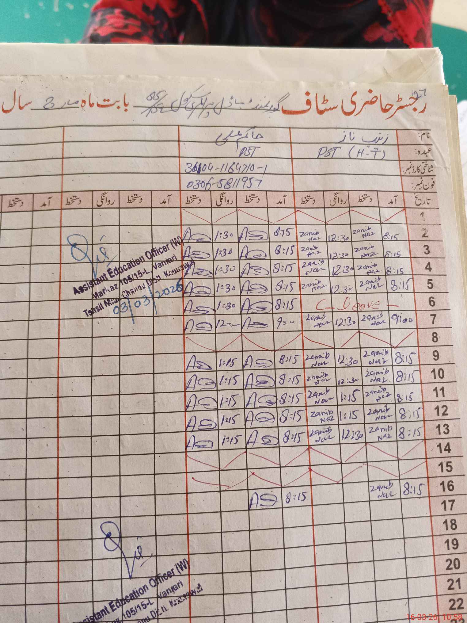 | Name: Za**** Na**** Designation: (School Headmaster's/Headmistress's) PST Phone/Cell Number: 03**** |