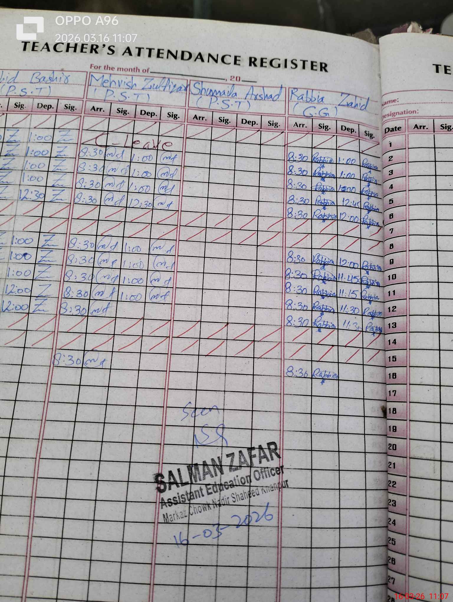 | Name: Za**** Ba**** Designation: (School Headmaster's/Headmistress's) ESE Sci.Math Phone/Cell Number: 03**** |