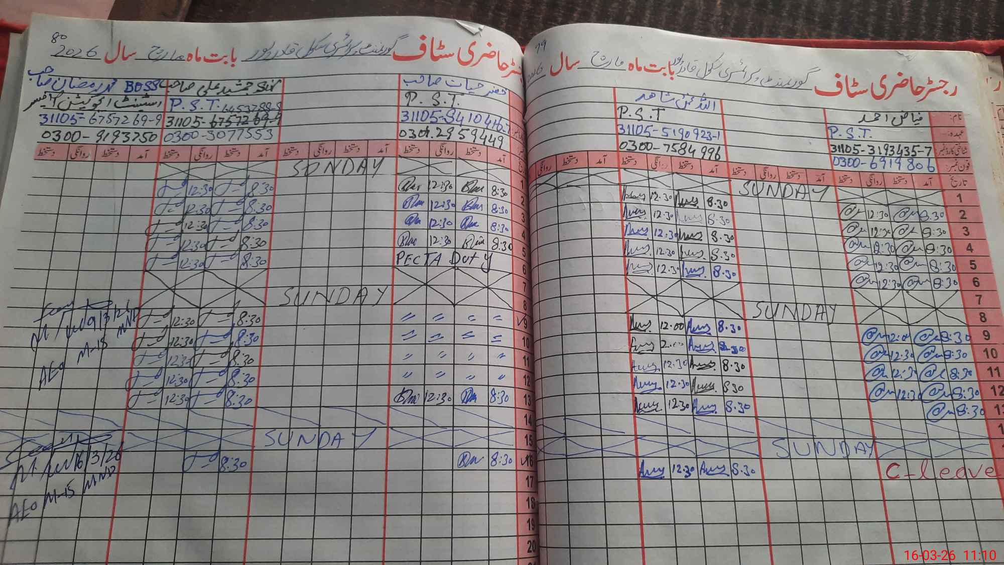 | Leave | Duty | Absent | Maternity | Medical | Ex- Pak |