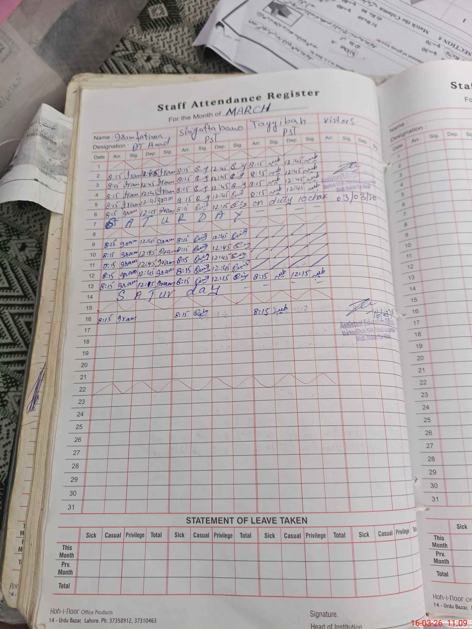 | Name: IR**** FA**** Designation: (School Headmaster's/Headmistress's) PST Phone/Cell Number: 03**** |