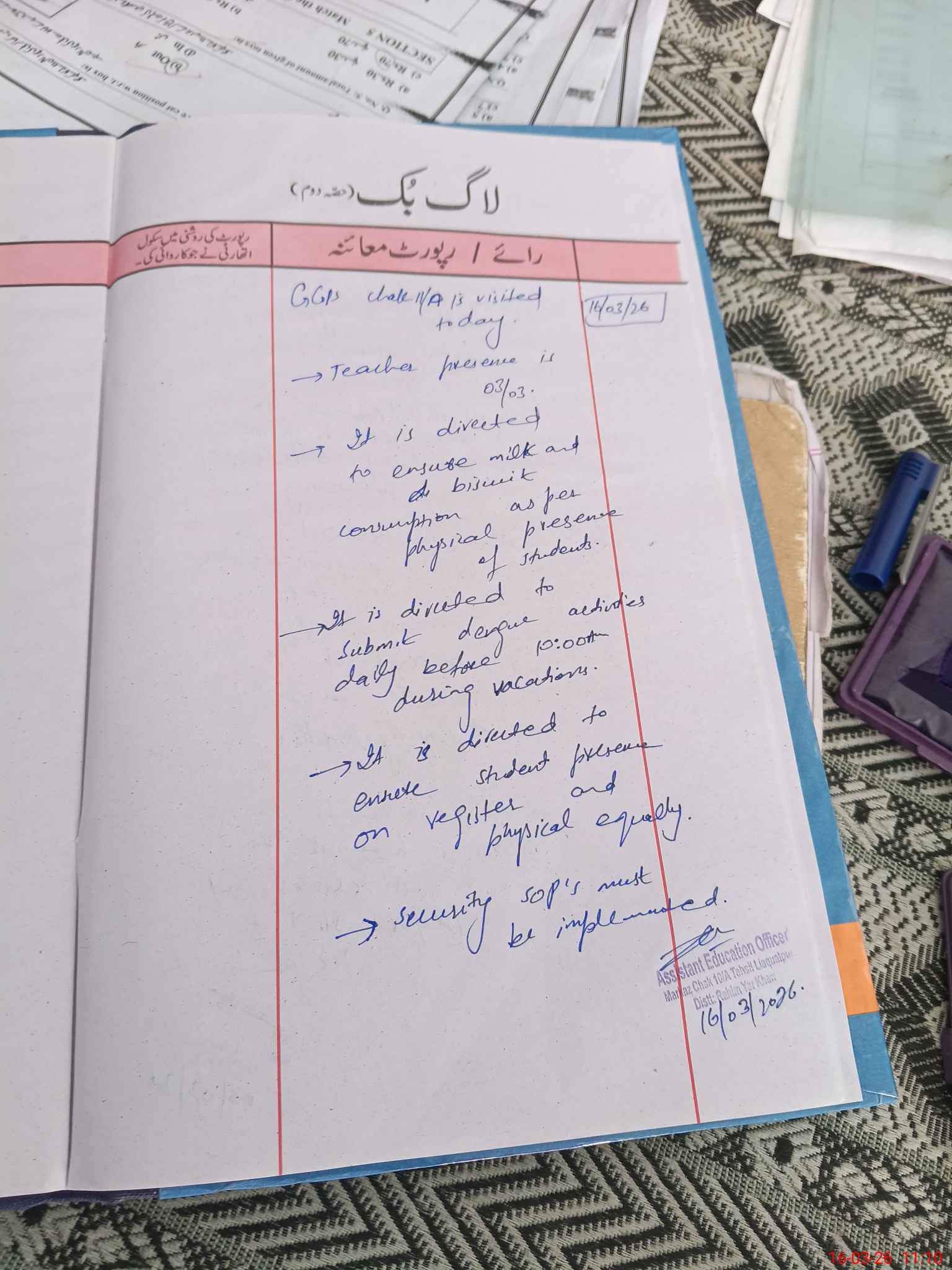 | Monitoring Date: 16-03-2026 | Start Time: 16-03-2026 10:53 AM | End Time: 16-03-2026 11:10 AM | Name of MEA: Zu**** Kh**** | |