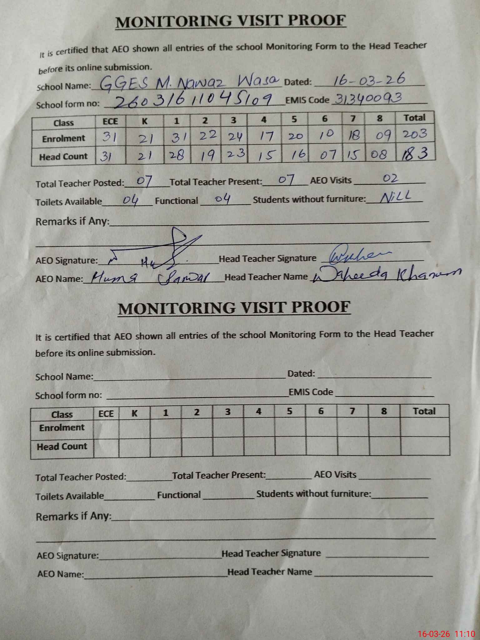 | EMIS Code: 31340093 | Name of School: GGES MUHAMMAD NAWAZ WASA | |||