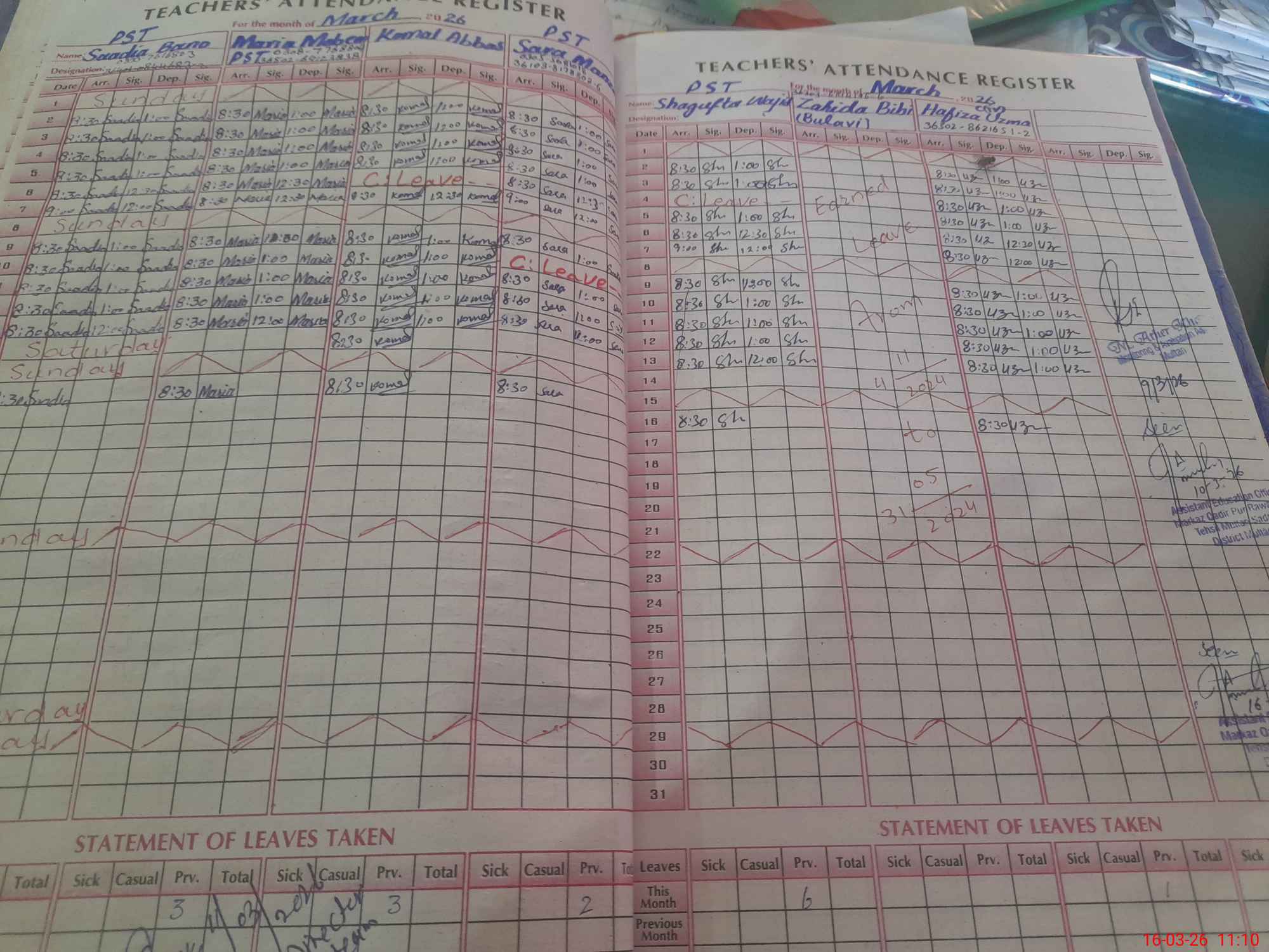 | Leave | Duty | Absent | Maternity | Medical | Ex- Pak |