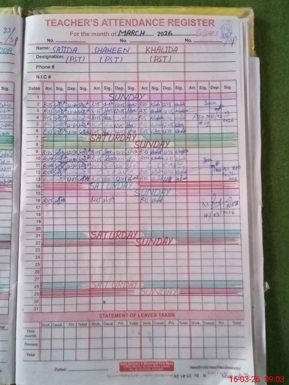| 36**** | Kh**** Sh**** | PST Science/Maths | Regular | 1 | 0 | 0 | 0 | 0 | 0 | 0 | 0 | 1 | Casual |