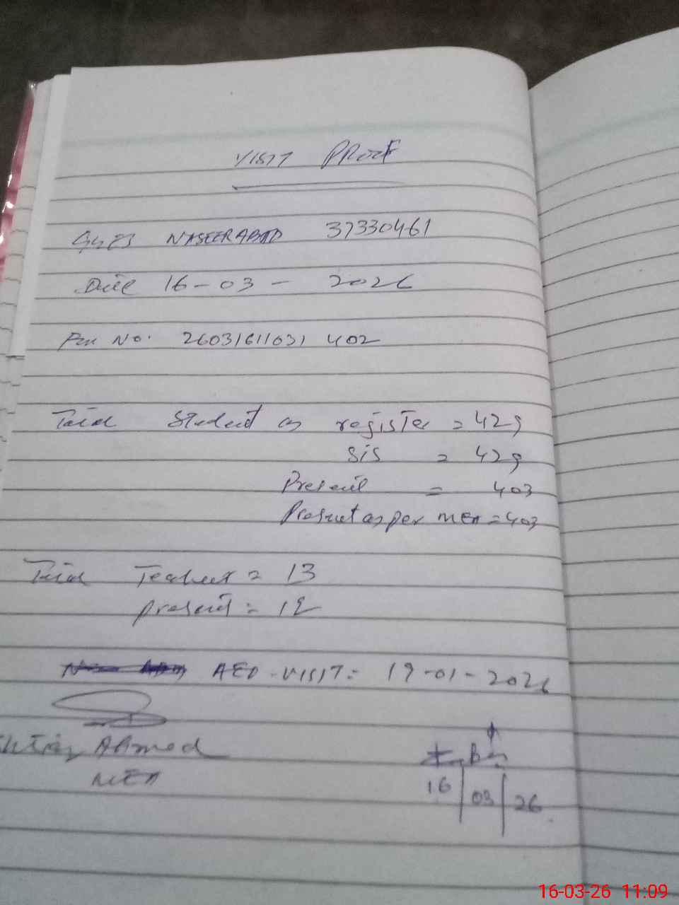 | Attendance Register | Head Teacher | MEA with School | Visit Proof |