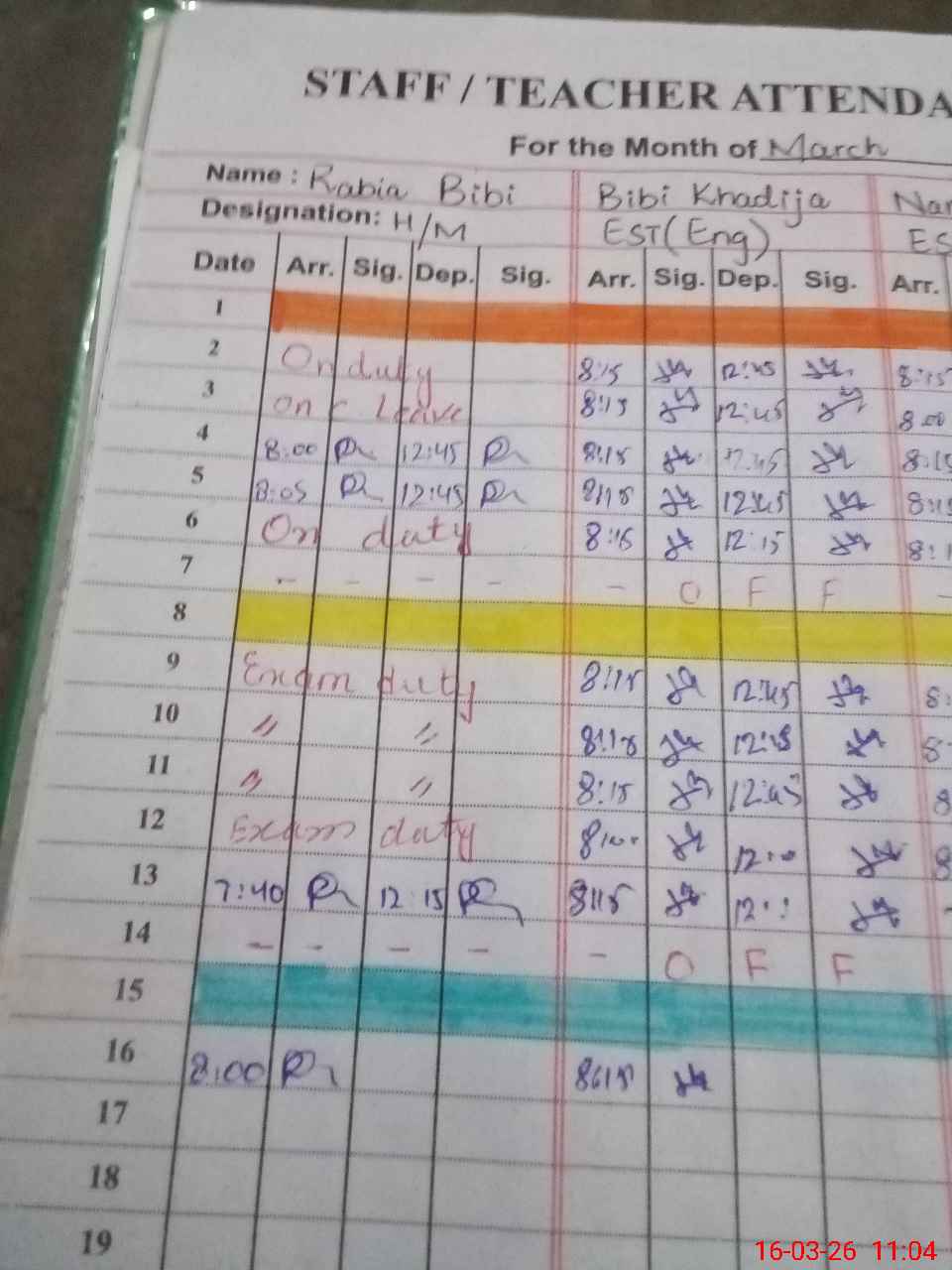 | Leave | Duty | Absent | Maternity | Medical | Ex- Pak |