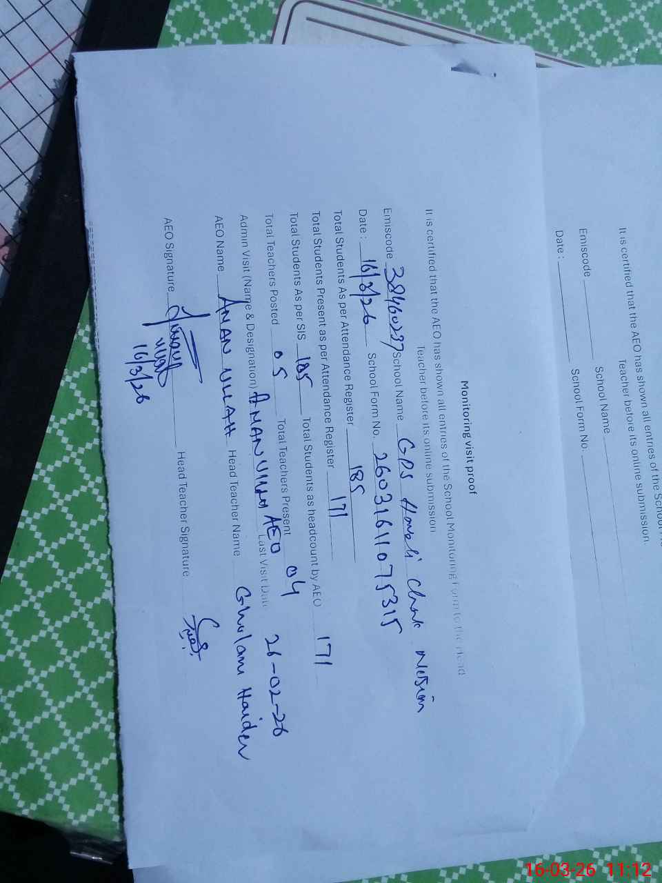 | EMIS Code: 38460237 | Name of School: GPS HAVELI CHAK MUSIAN | |||