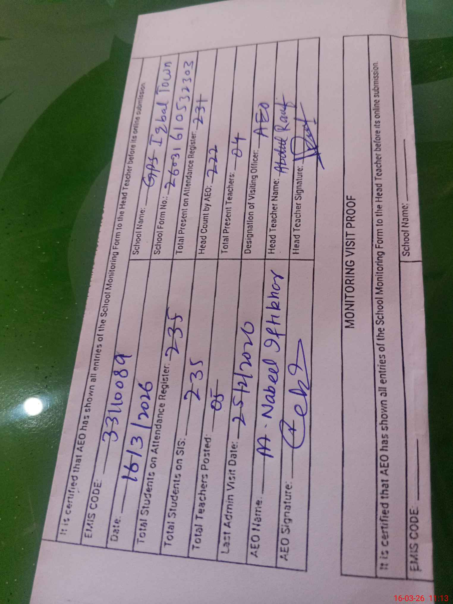 | EMIS Code: 33110089 | Name of School: GPS MC GULSHAN COLONY IQBAL TOWN FSD | |||