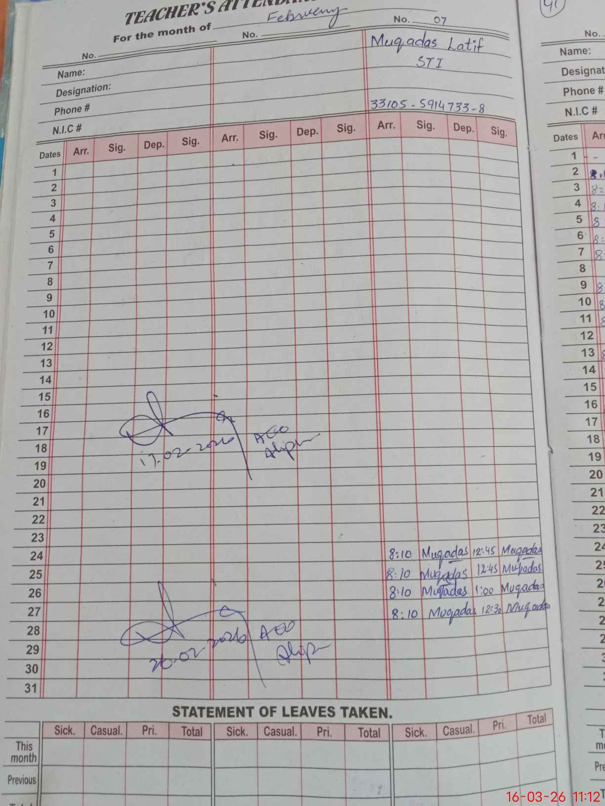 | Name: Ma**** BI**** Designation: (School Headmaster's/Headmistress's) SST ( Arts ) Phone/Cell Number: 03**** |