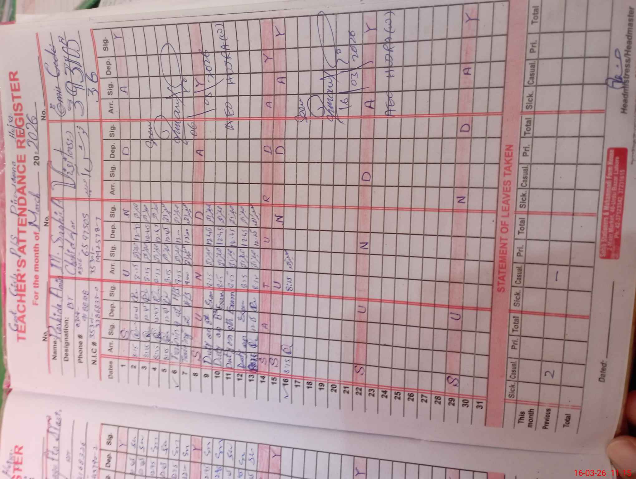 | Name: TA**** PA**** Designation: (School Headmaster's/Headmistress's) PST Phone/Cell Number: 03**** |