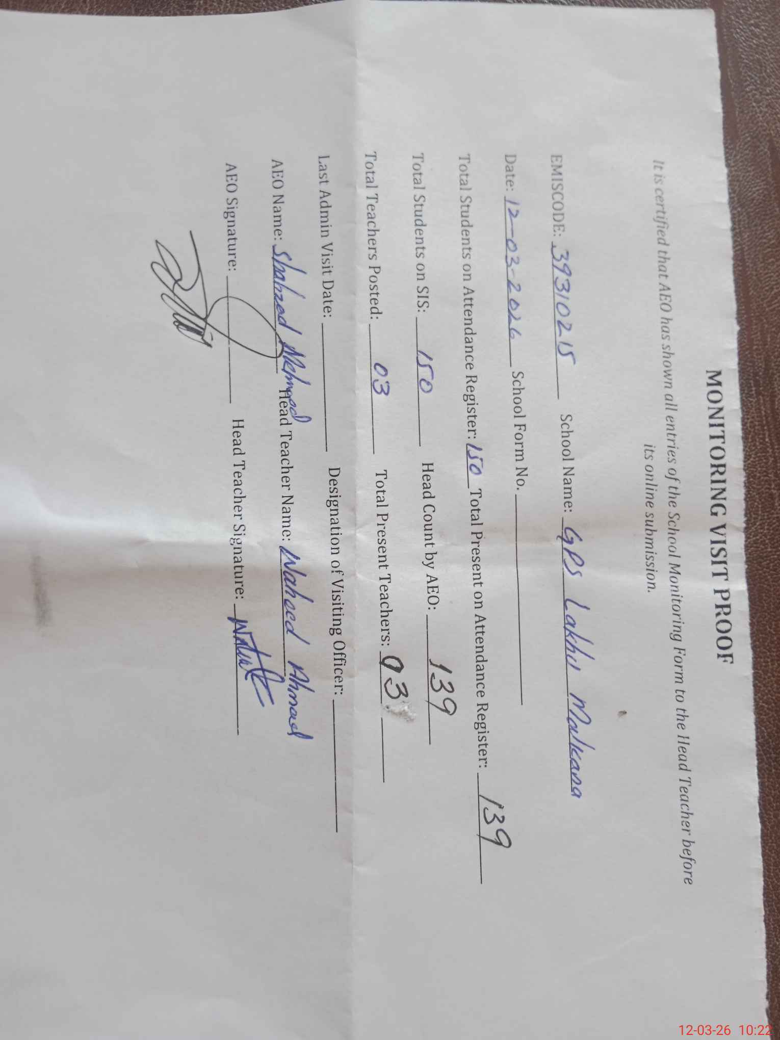 | EMIS Code: 39310215 | Name of School: GPS LAKHU MALKANA | |||