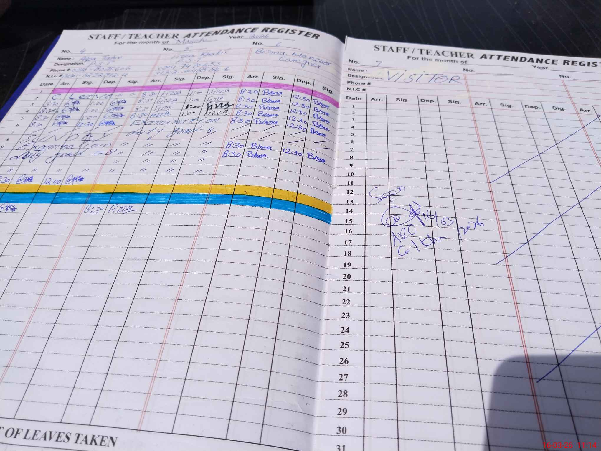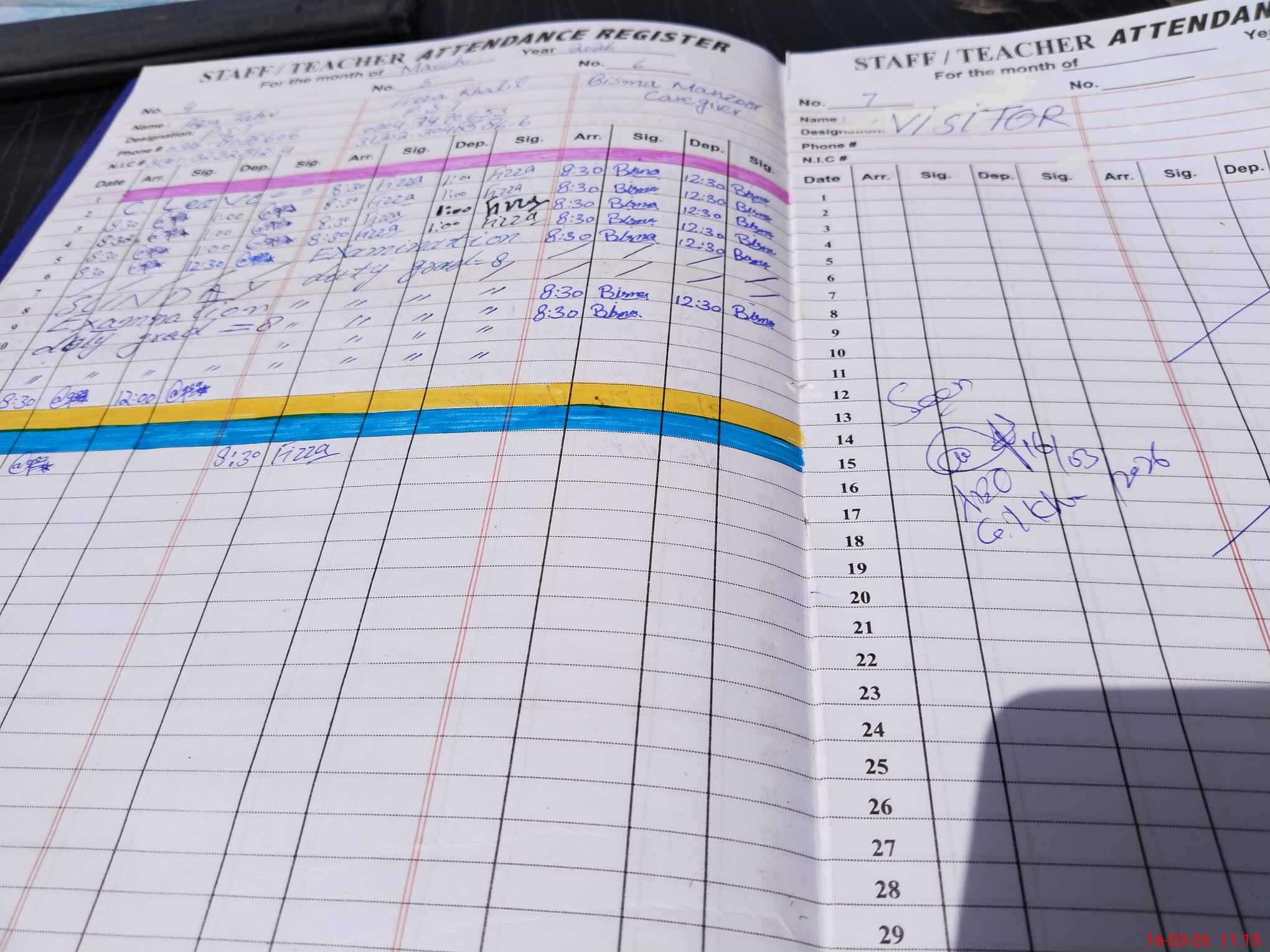 | CNIC | Full Name | Designation | R/C | Absence During Last Calender Month |