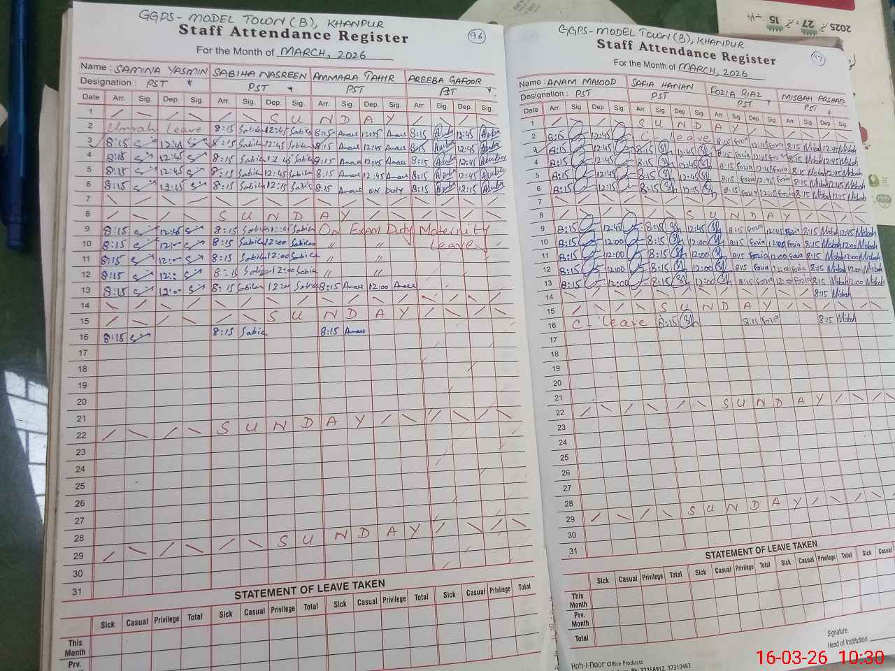 | 31**** | Ar**** Gh**** | PST (Science-Math) | Regular | 2 | 0 | 0 | 0 | 0 | 0 | 0 | 0 | 2 | Absent (Un-Authorized) |