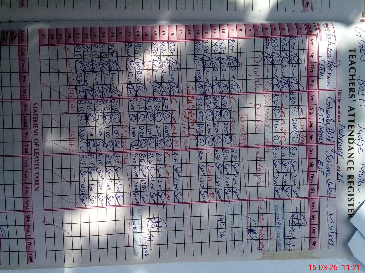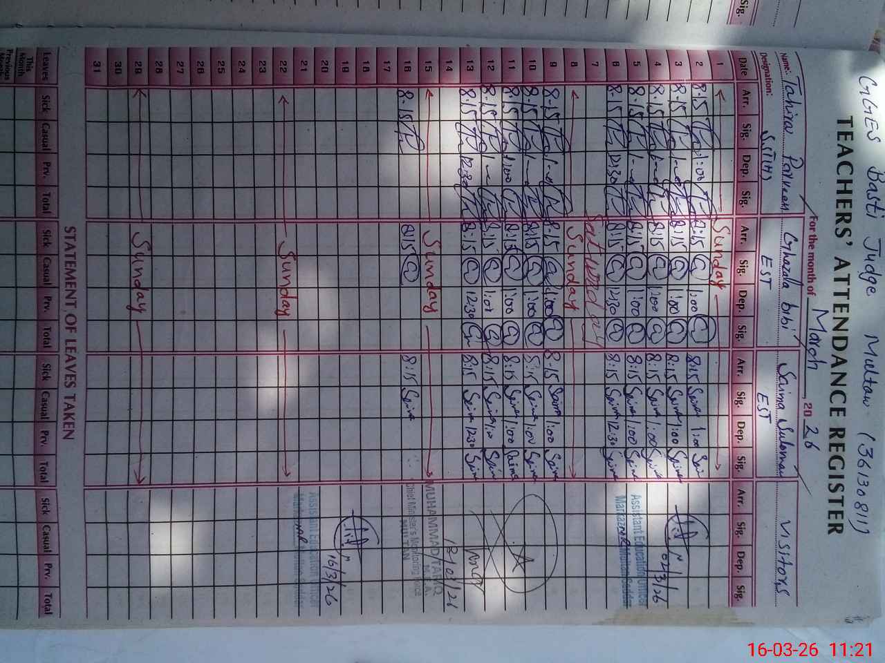 | Name: Ta**** Pa**** Designation: (School Headmaster's/Headmistress's) Sst Phone/Cell Number: 03**** |