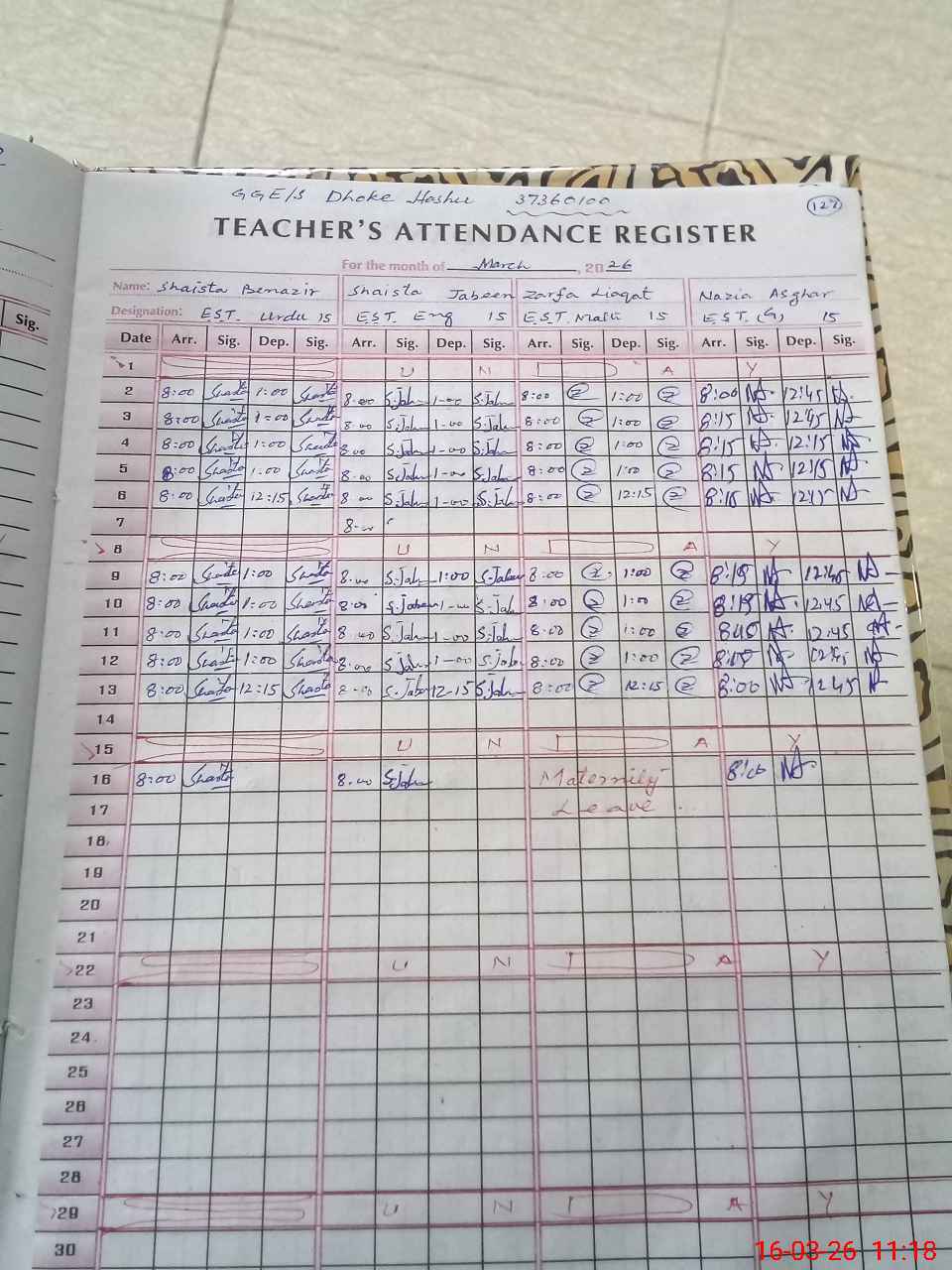 | 37**** | Za**** Li**** | EST Maths | Regular | 0 | 0 | 0 | 0 | 0 | 0 | 0 | 0 | 0 | Maternity |