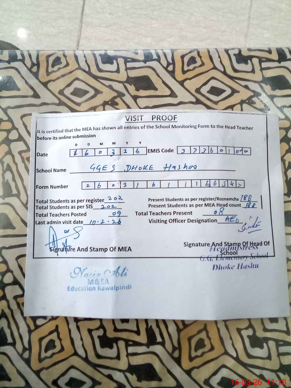 | EMIS Code: 37360100 | Name of School: GGES DHOK HASUE | |||