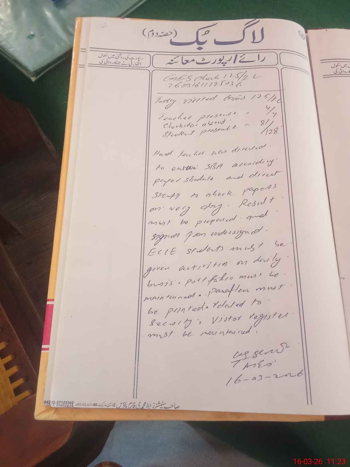 | Attendance Register | Head Teacher | MEA with School | Visit Proof |