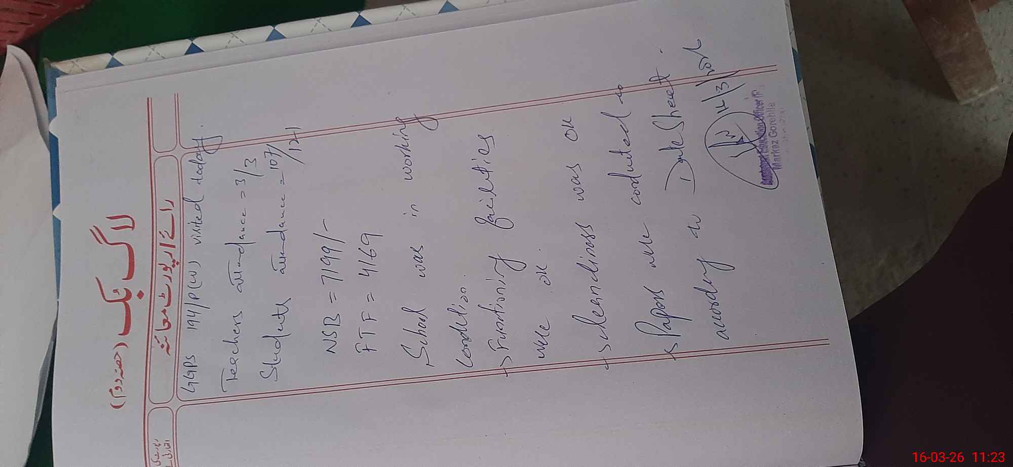 | Attendance Register | Head Teacher | MEA with School | Visit Proof |