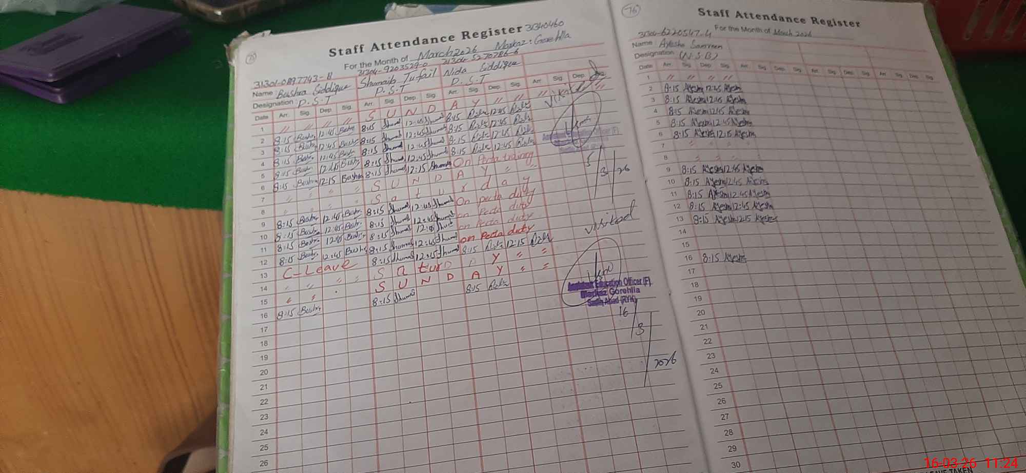 | Leave | Duty | Absent | Maternity | Medical | Ex- Pak |