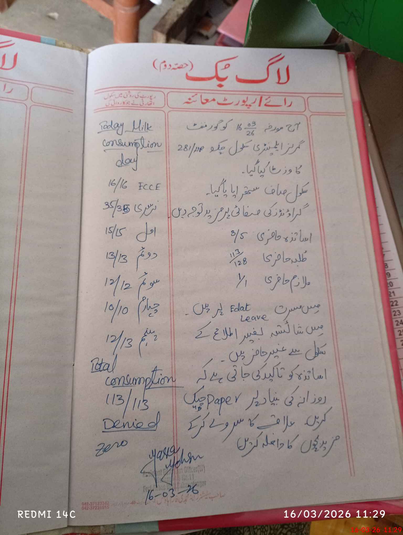 | Certified that this School was Inspected by the Undersigned MEA/DMO Today and the Information Stated Above is as Per Record. | |||||