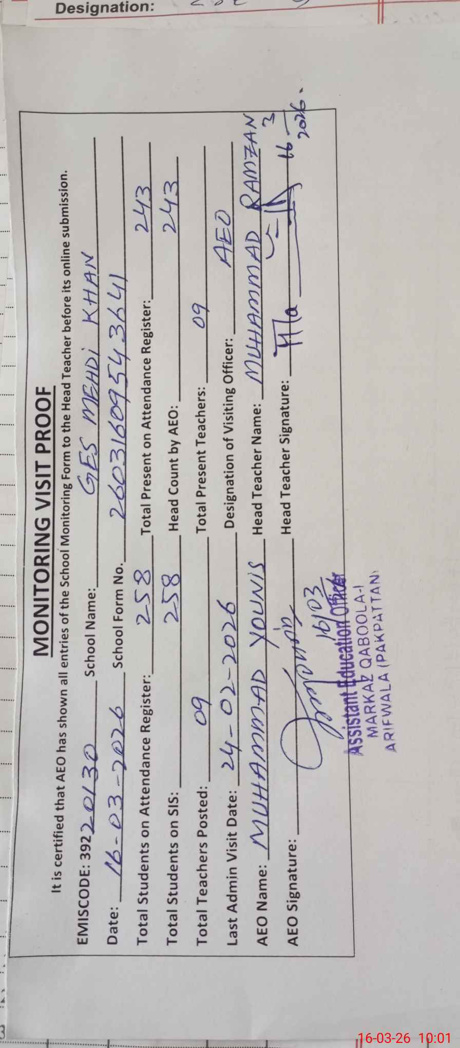 | EMIS Code: 39220130 | Name of School: GES MEHDI KHAN | |||