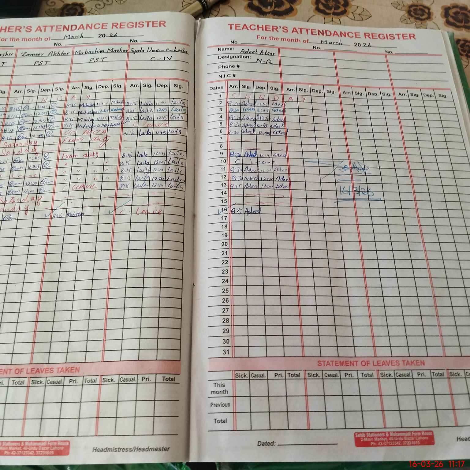 | Leave | Duty | Absent | Maternity | Medical | Ex- Pak |