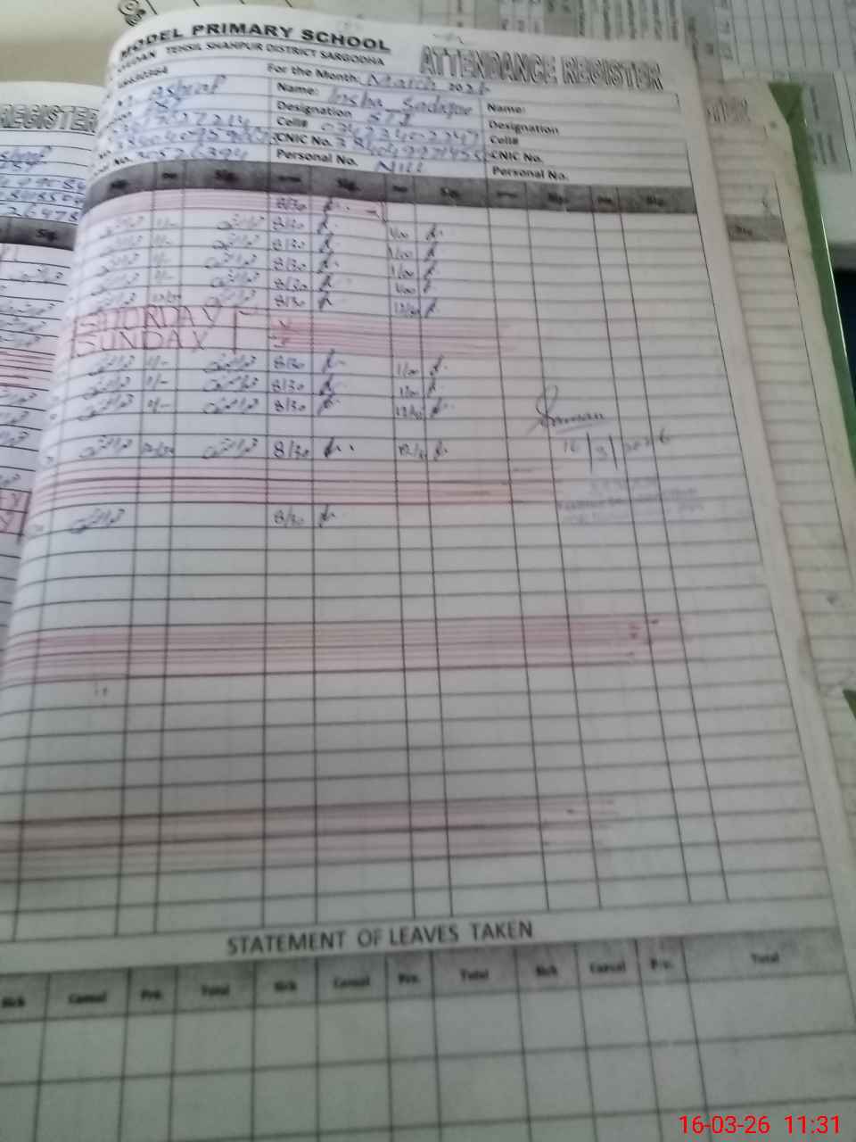 | Name: SA**** NA**** Designation: (School Headmaster's/Headmistress's) PST Phone/Cell Number: 03**** |