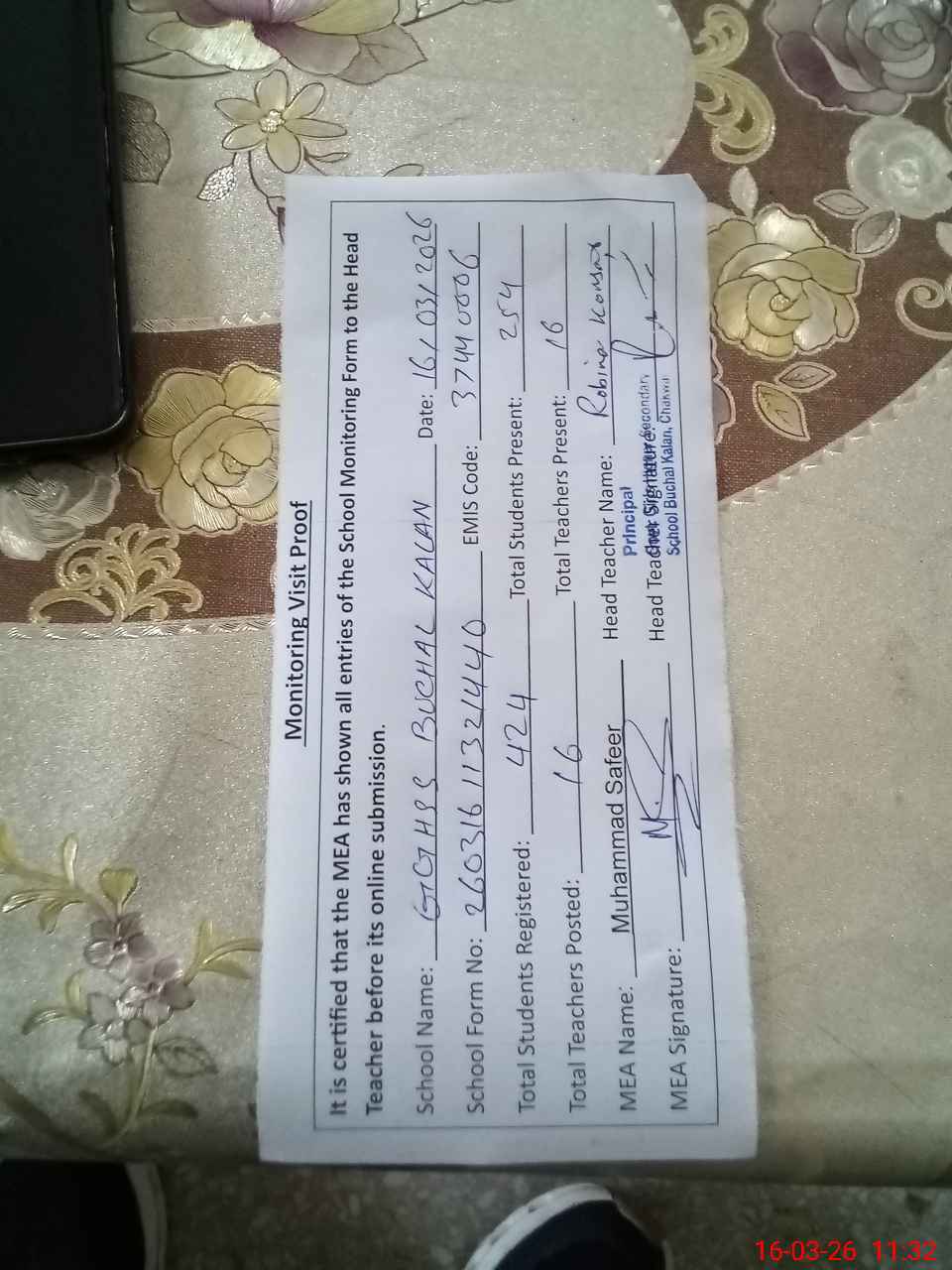 | EMIS Code: 37440006 | Name of School: GGHSS BUCHAL KALAN | |||