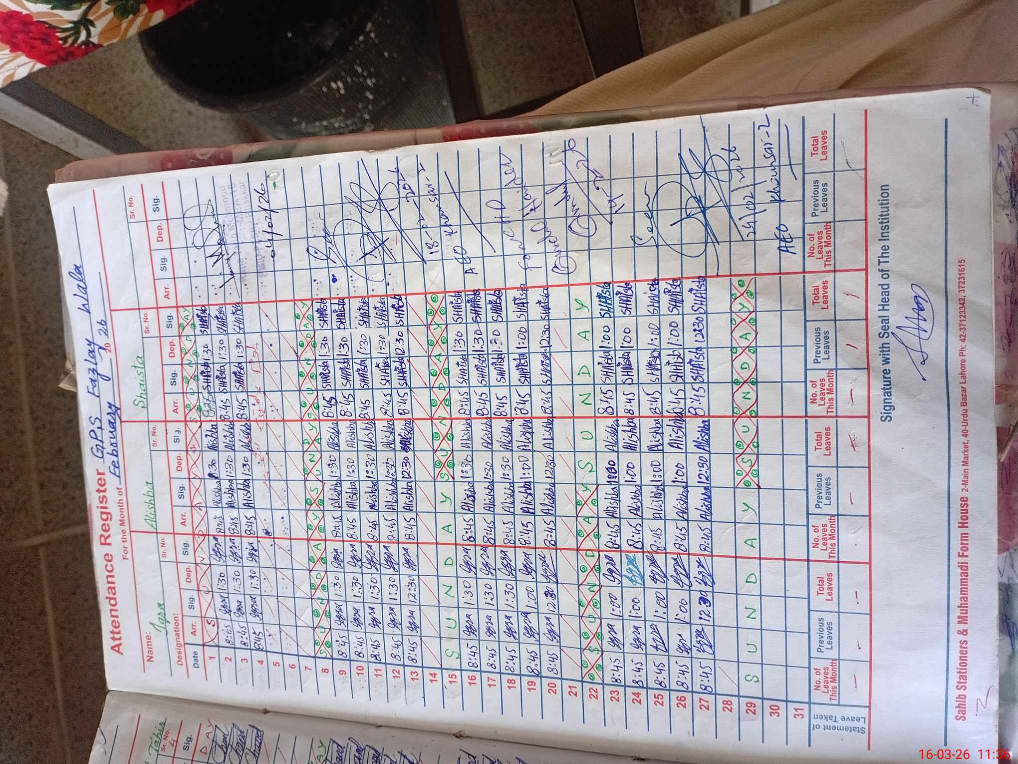 | Name: SA**** AB**** Designation: (School Headmaster's/Headmistress's) PTC/JV Phone/Cell Number: 03**** |