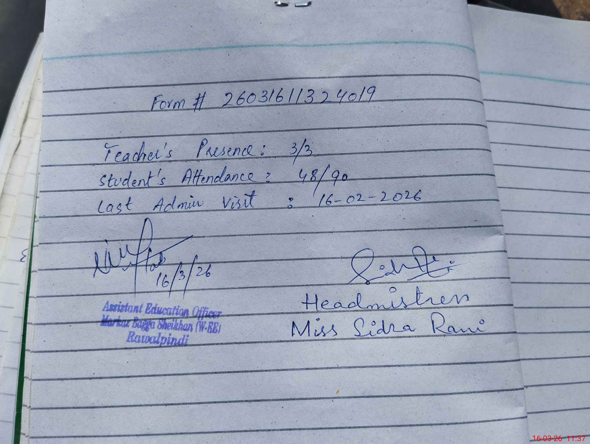 | District: RAWALPINDI | Tehsil: RAWALPINDI | Markaz: BAGGA SHEIKHAN-FEMALE | Level: Primary | |