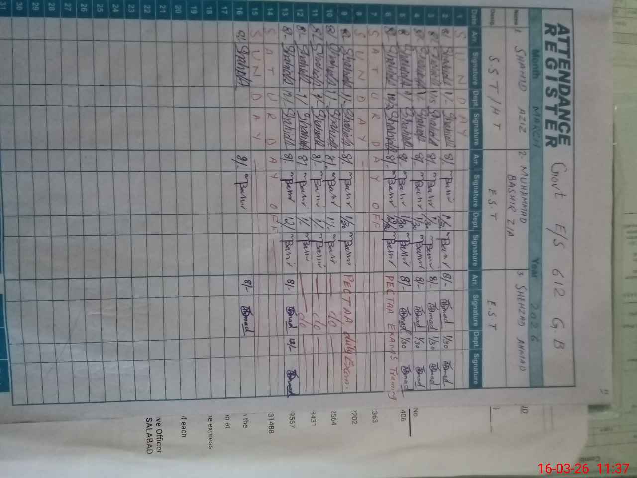 | Name: SH**** AZ**** Designation: (School Headmaster's/Headmistress's) SST (GENERAL ) Phone/Cell Number: 03**** |