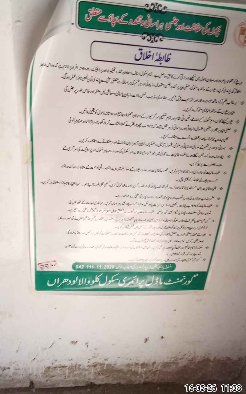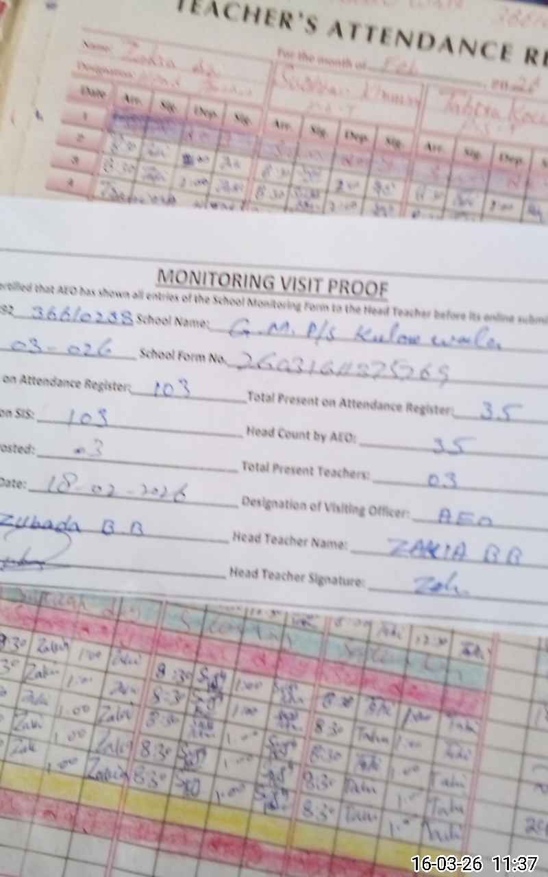 | EMIS Code: 36610238 | Name of School: GMPS KALU WALA | |||