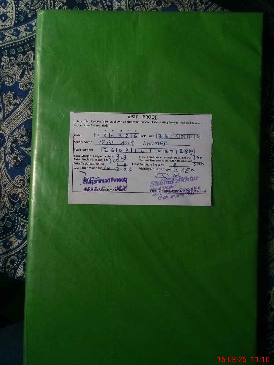 | EMIS Code: 33150114 | Name of School: GPS 5 CHAK JHUMRA | |||