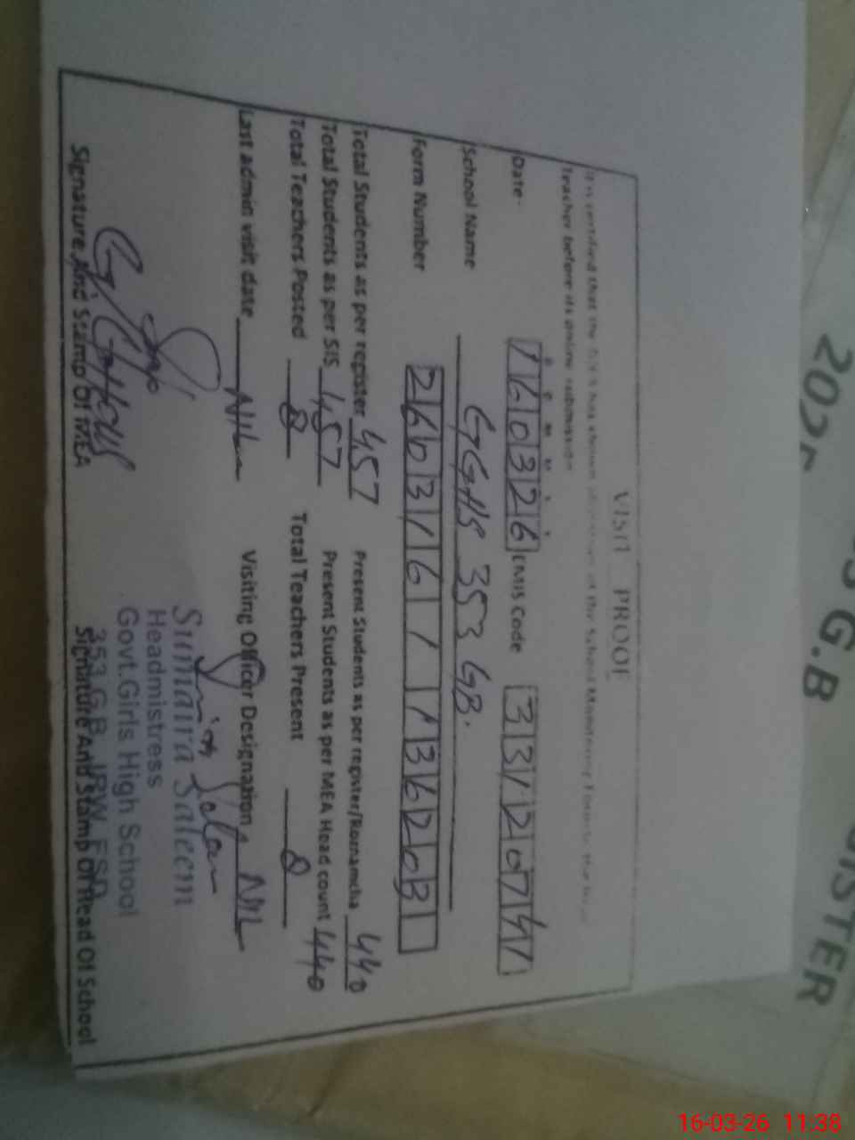 | Attendance Register | Head Teacher | MEA with School | Visit Proof |