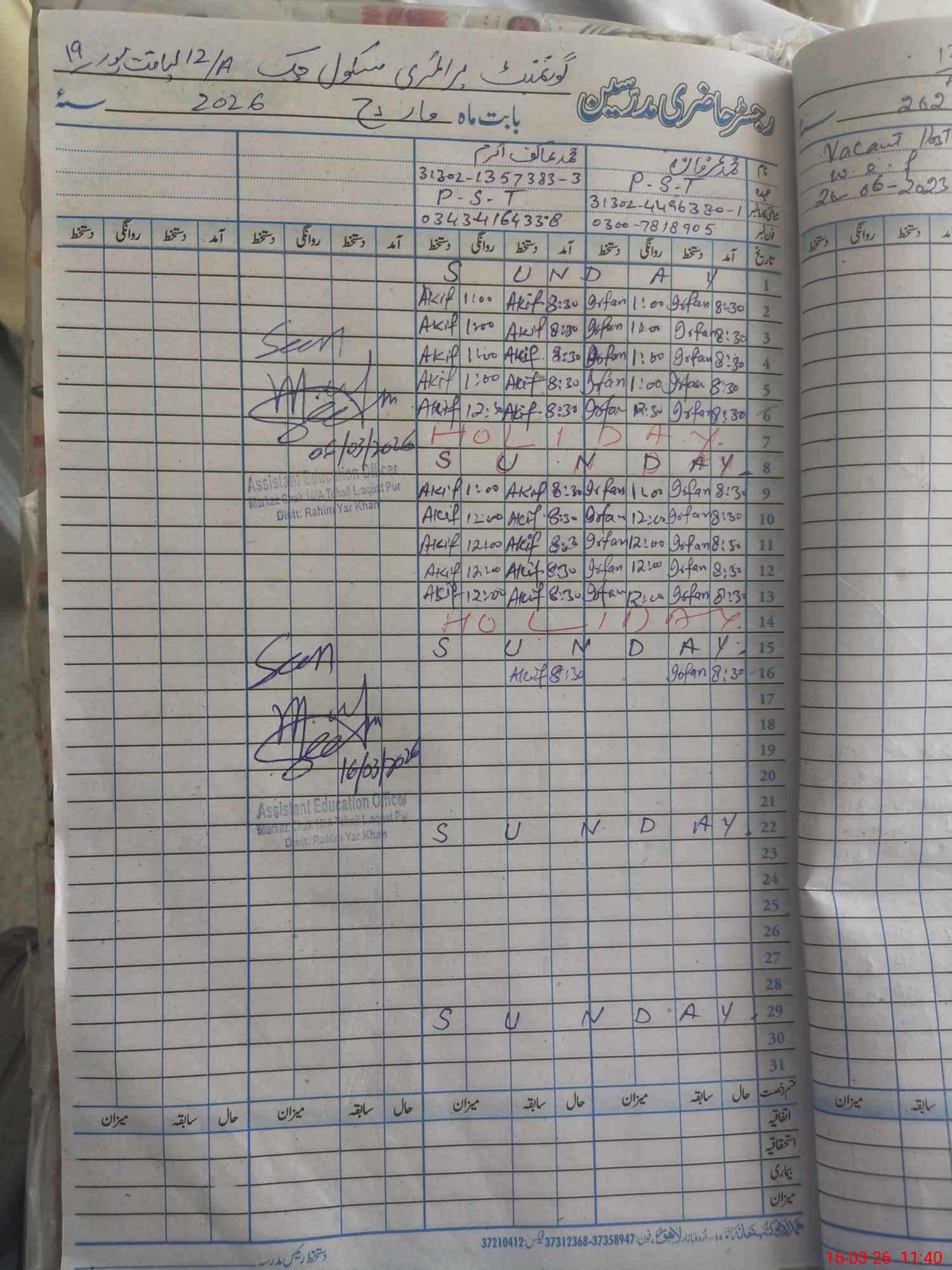| Name: MU**** IR**** Designation: (School Headmaster's/Headmistress's) PST Phone/Cell Number: 03**** |