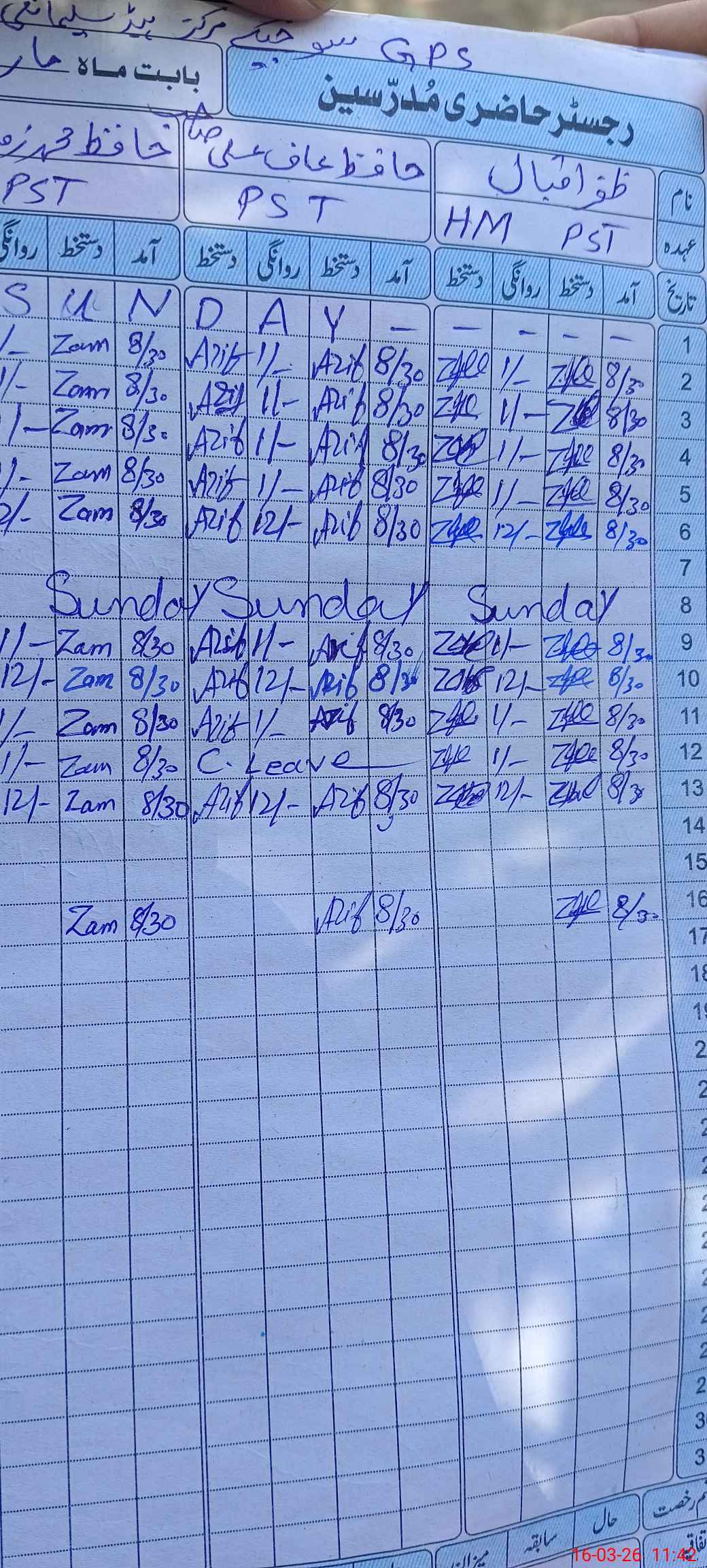 | Name: ZA**** IQ**** Designation: (School Headmaster's/Headmistress's) PST Phone/Cell Number: 03**** |