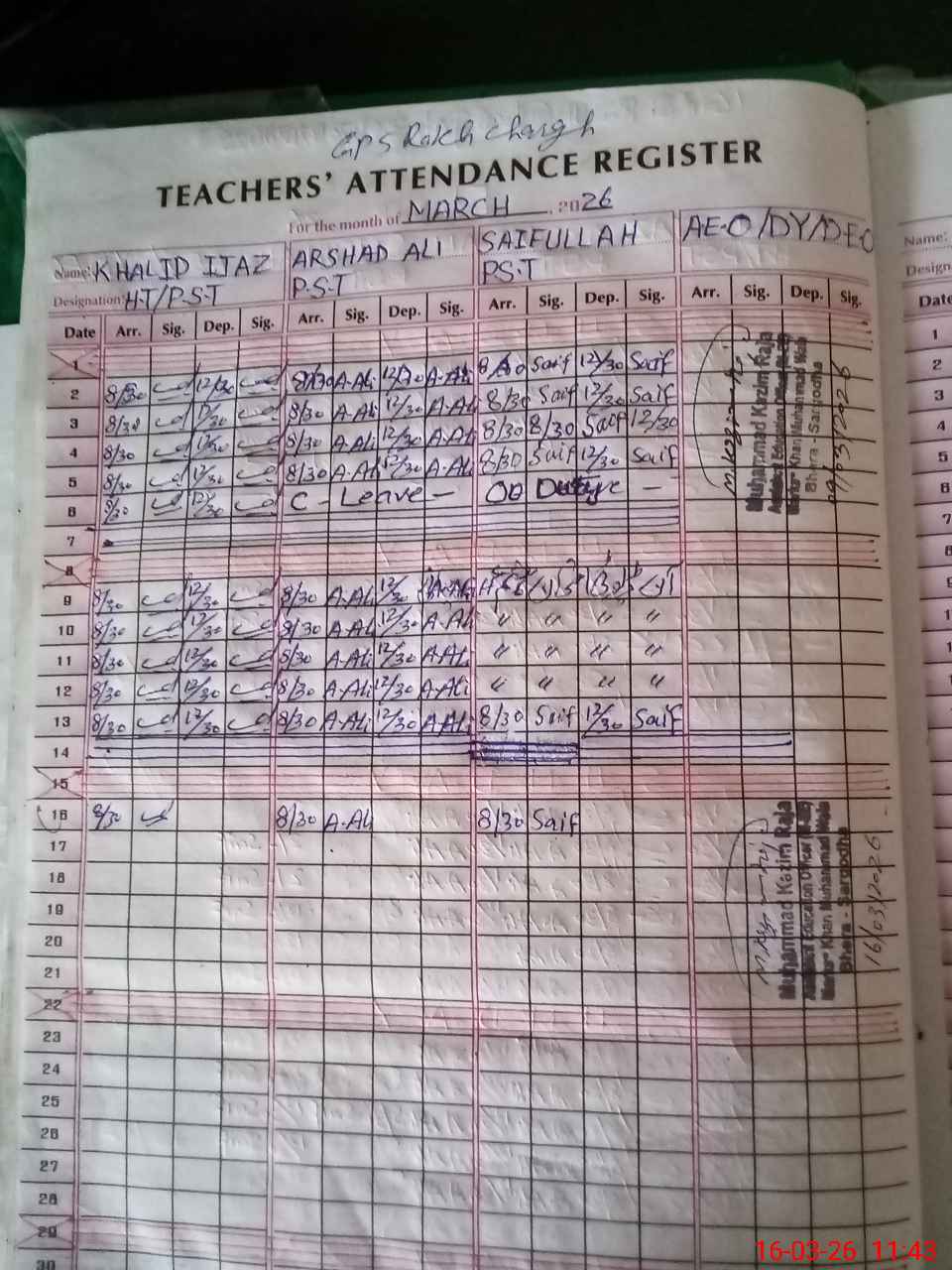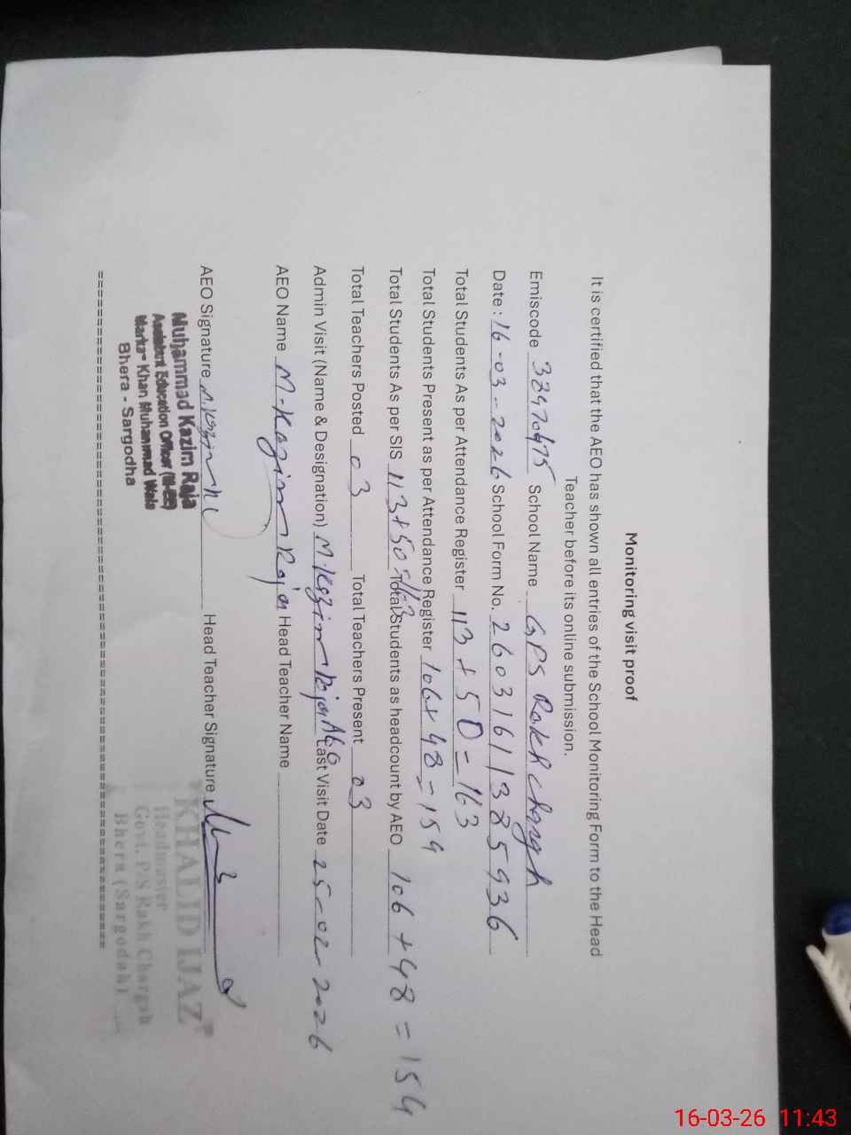 | Name: Kh**** Ij**** Designation: (School Headmaster's/Headmistress's) PST Phone/Cell Number: 03**** |