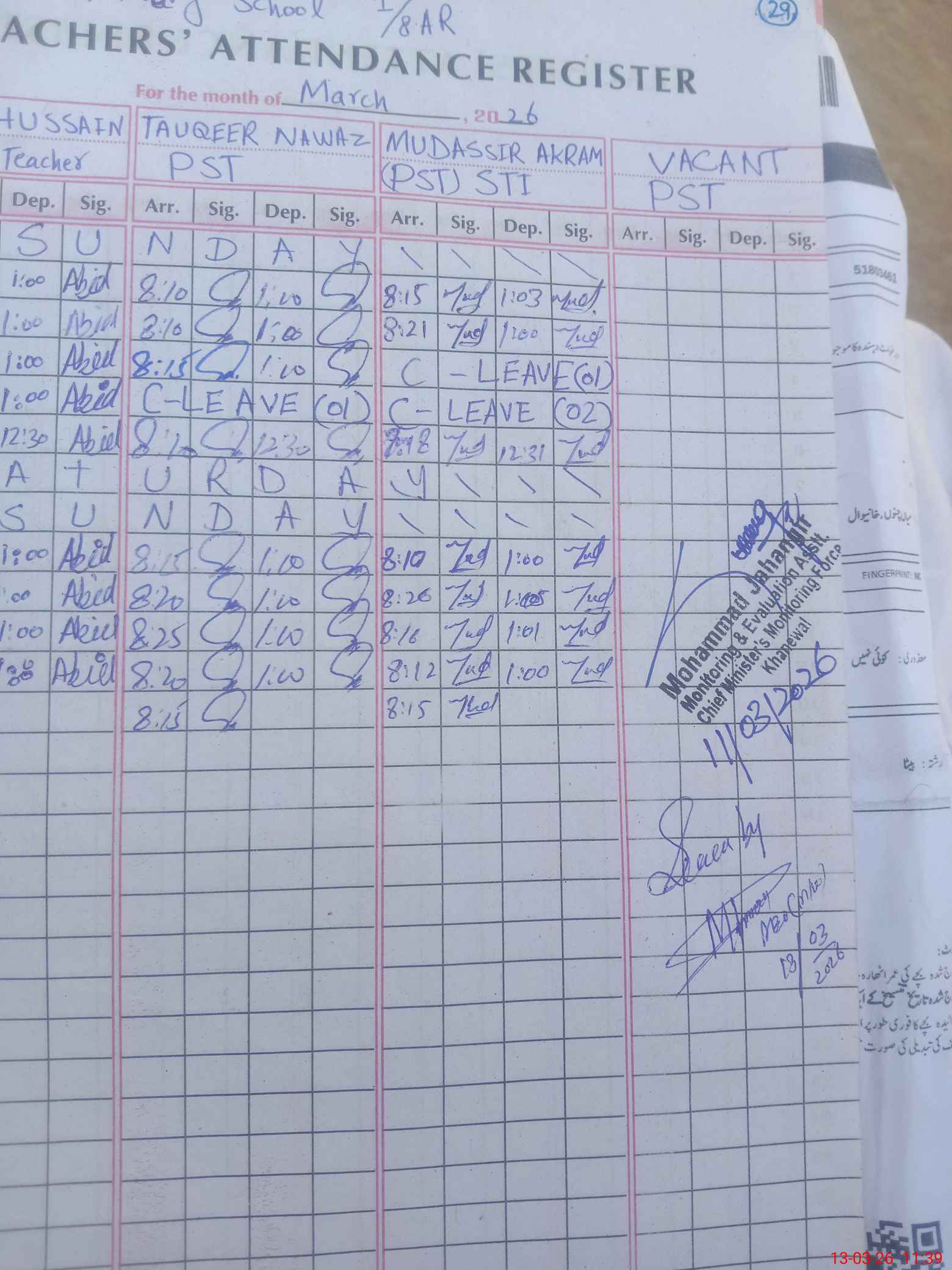 | Name: Ab**** Hu**** Designation: (School Headmaster's/Headmistress's) PST Phone/Cell Number: 03**** |