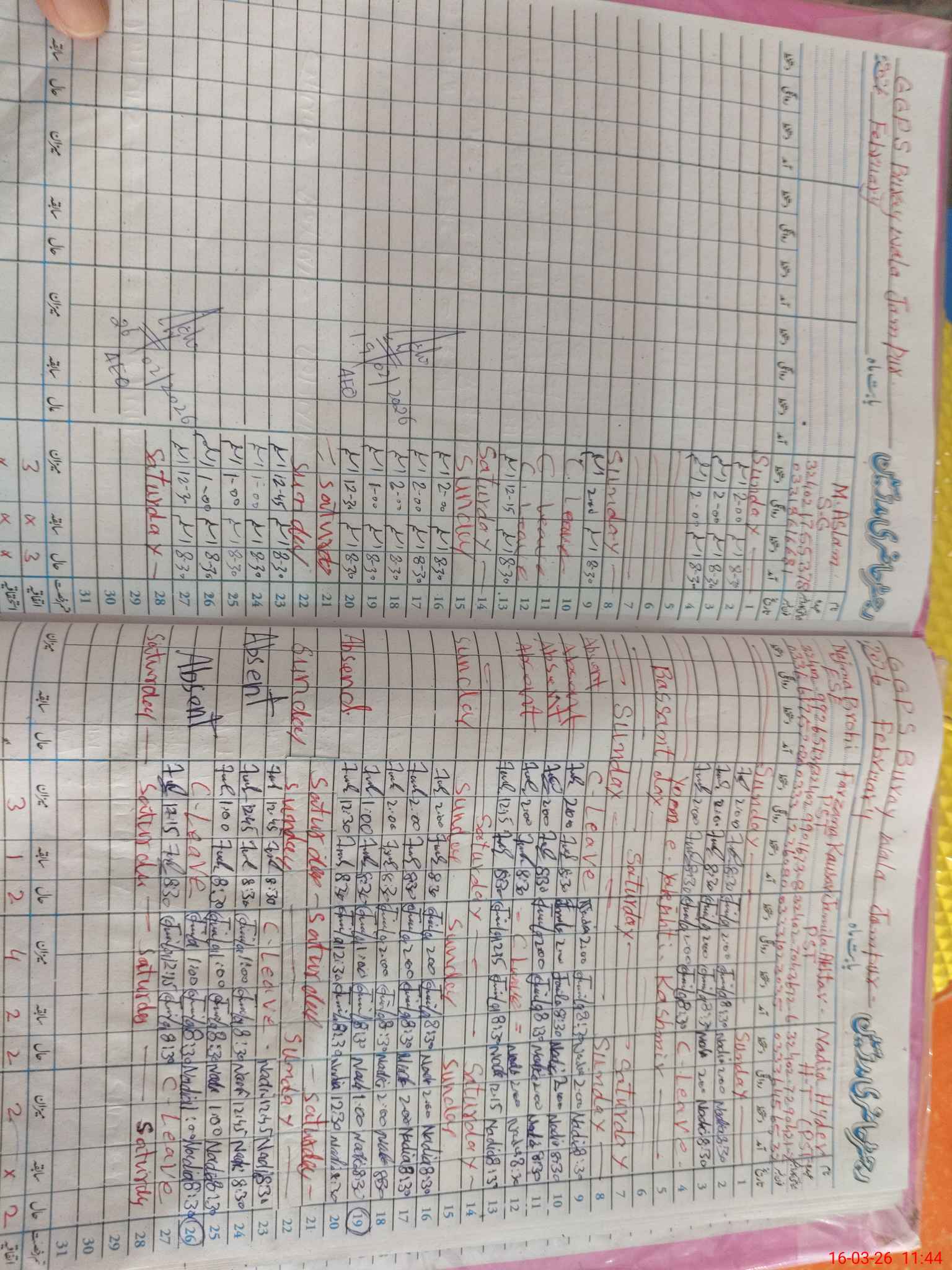 | Leave | Duty | Absent | Maternity | Medical | Ex- Pak |