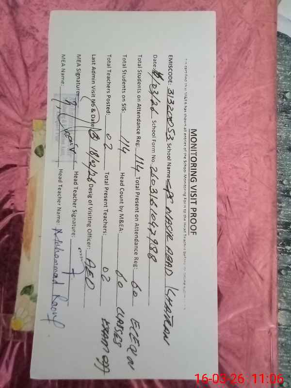 | EMIS Code: 31320053 | Name of School: GPS NASIR ABAD BASTI KHATRAN | |||