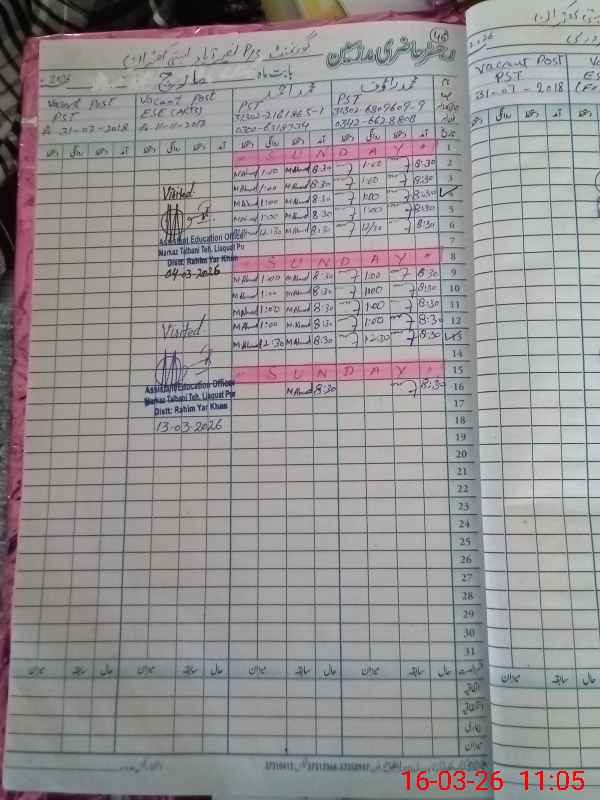 | District: RAHIMYAR KHAN | Tehsil: LIAQATPUR | Markaz: TALBANI-MALE | Level: Primary | |