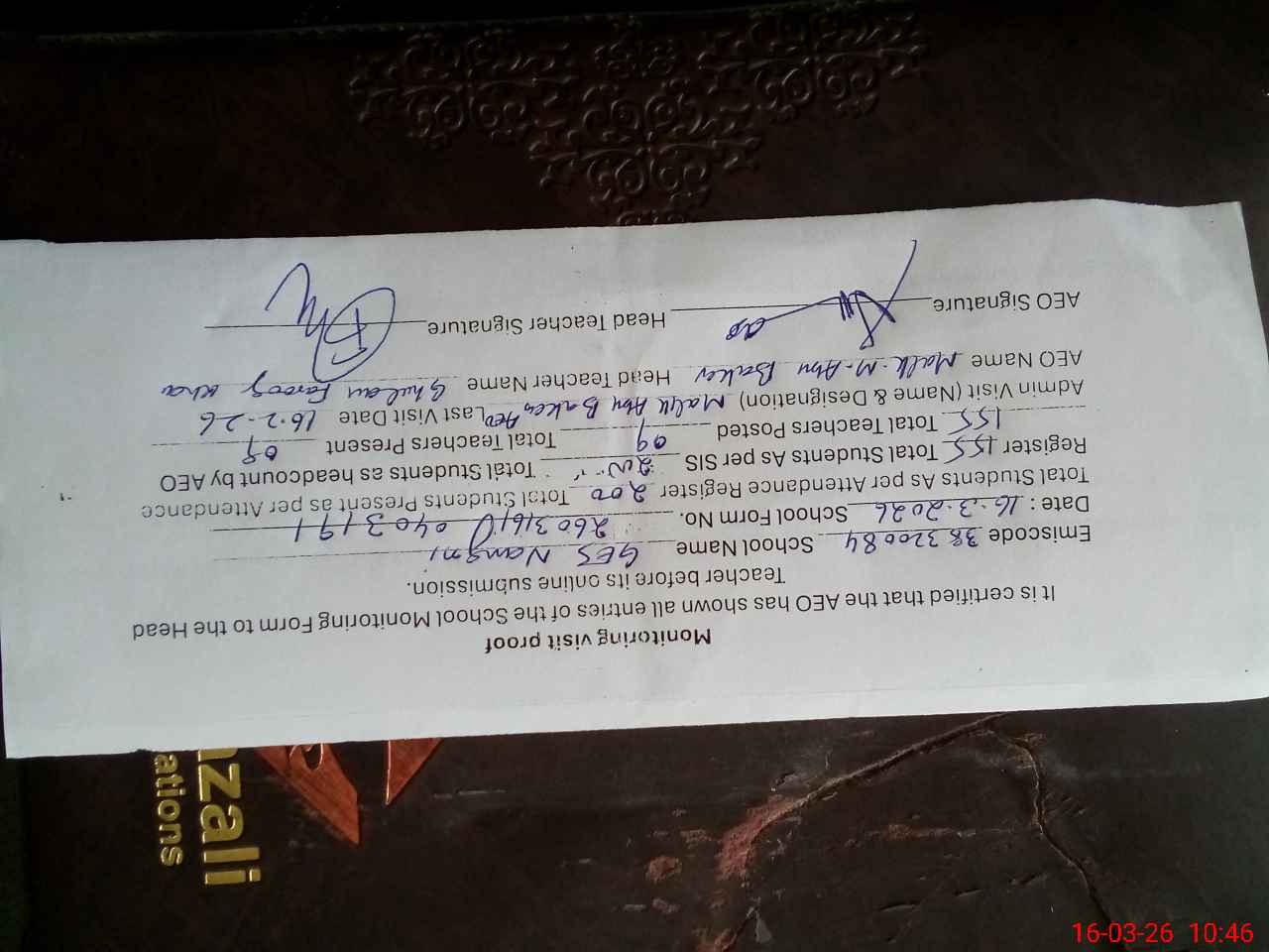 | Certified that this School was Inspected by the Undersigned MEA/DMO Today and the Information Stated Above is as Per Record. | |||||